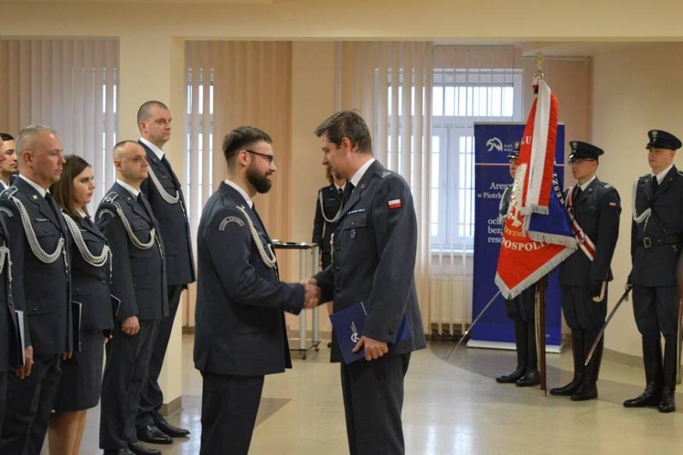 - Major Białkowski gratulując funkcjonariuszom awansów podkreślił, że są one wyrazem uznania za ich zaangażowanie w służbę. Szczególne wyrazy uznanie kierował do funkcjonariusza wyróżnionego złotą odznaką „Za zasługi dla więziennictwa". Prosił o przekazanie najserdeczniejszych życzeń także rodzinom funkcjonariuszy i pracowników piotrkowskiej jednostki penitencjarnej, którą określił mianem jednej z najlepiej działających w kraju. W związku z powyższym w czasie uroczystości wyróżnił Dyrektora Aresztu Śledczego w Piotrkowie Trybunalskim mjr. Grzegorza Krawczyka nagrodą za wzorowe wykonywanie obowiązków służbowych, duże zaangażowanie, efektywną realizację zadań oraz wysoką jakość wykonywanej służby. Dyrektor Aresztu Śledczego w Piotrkowie Trybunalskim dziękując i dołączając się do gratulacji Dyrektora Okręgowego, podkreślił profesjonalizm podległych sobie funkcjonariuszy i podziękował im za ich oddanie ciężkiej służbie - przekazuje kpt. Cezary Jabłoński, rzecznik prasowy Aresztu Śledczego w Piotrkowie Trybunalskim.