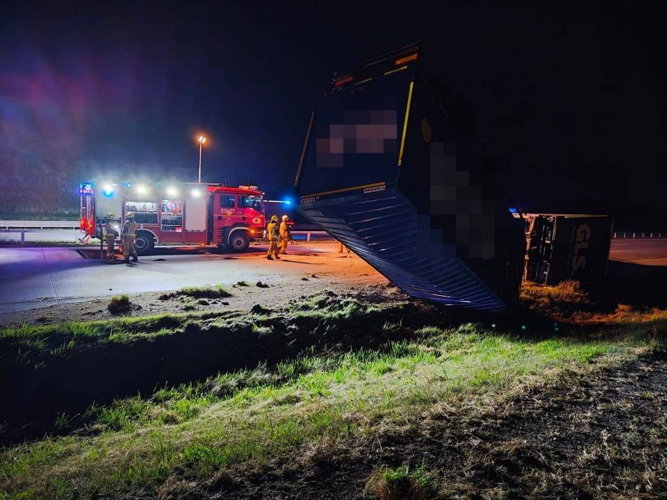 Do zdarzenia doszło kwadrans po godzinie 4.00 nad ranem. Według wstępnych informacji, pojazd przewrócił się częściowo na trasę, a przyczepa wpadła na pas zieleni. Jak przekazuje st. kpt. Marek Jeziorski z KP PSP Radomsko, kierowcy opuścili pojazd o własnych siłach jeszcze przed przybyciem służb ratunkowych i nie zgłaszali dolegliwości, w związku z czym nie wymagali pomocy medycznej.