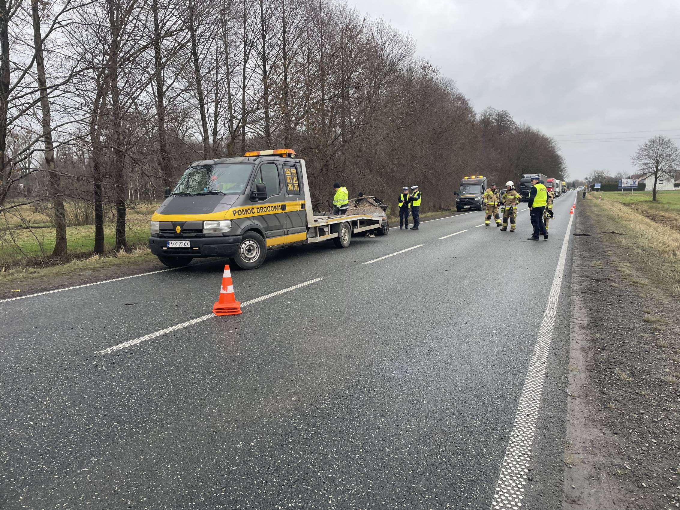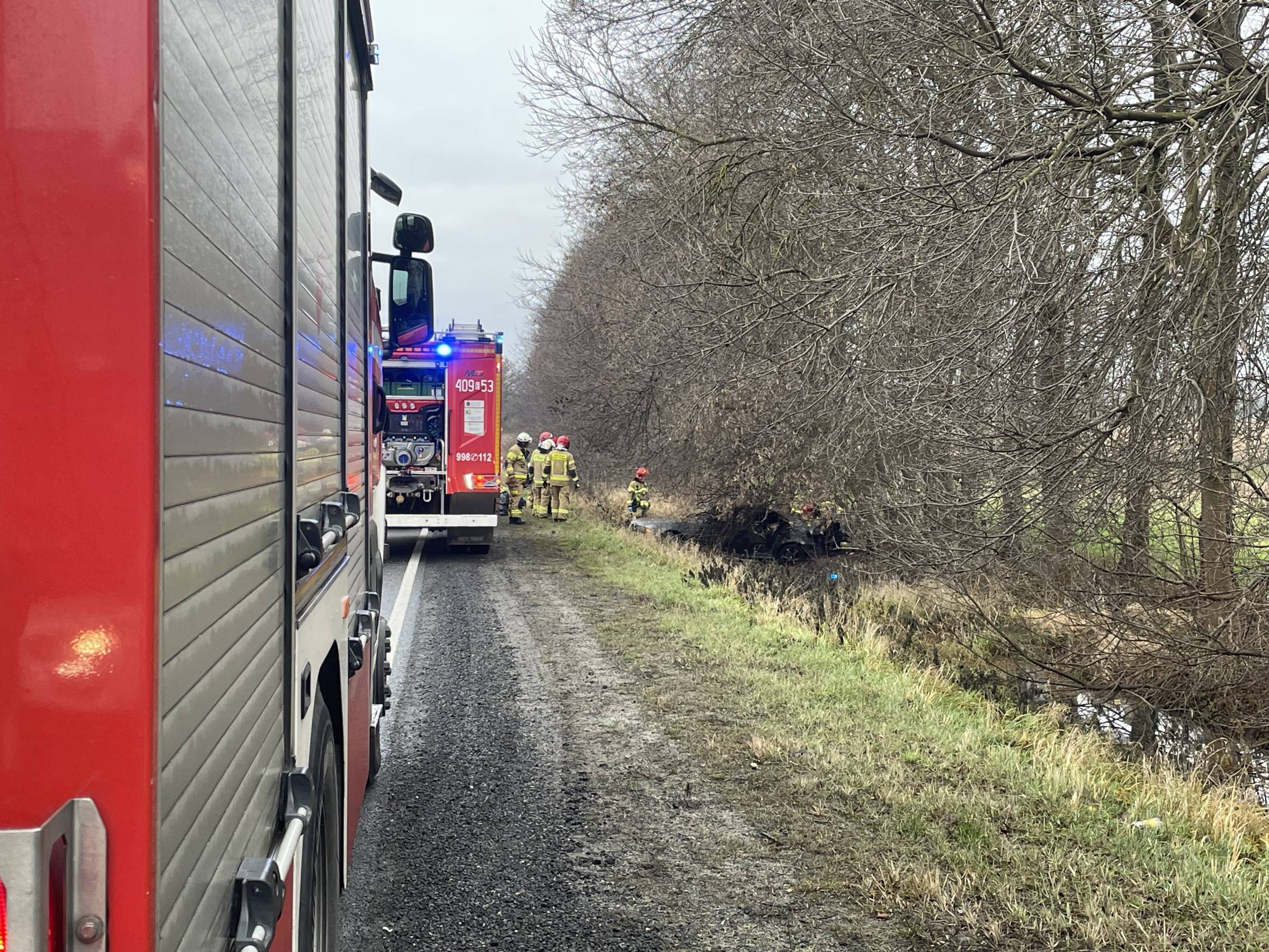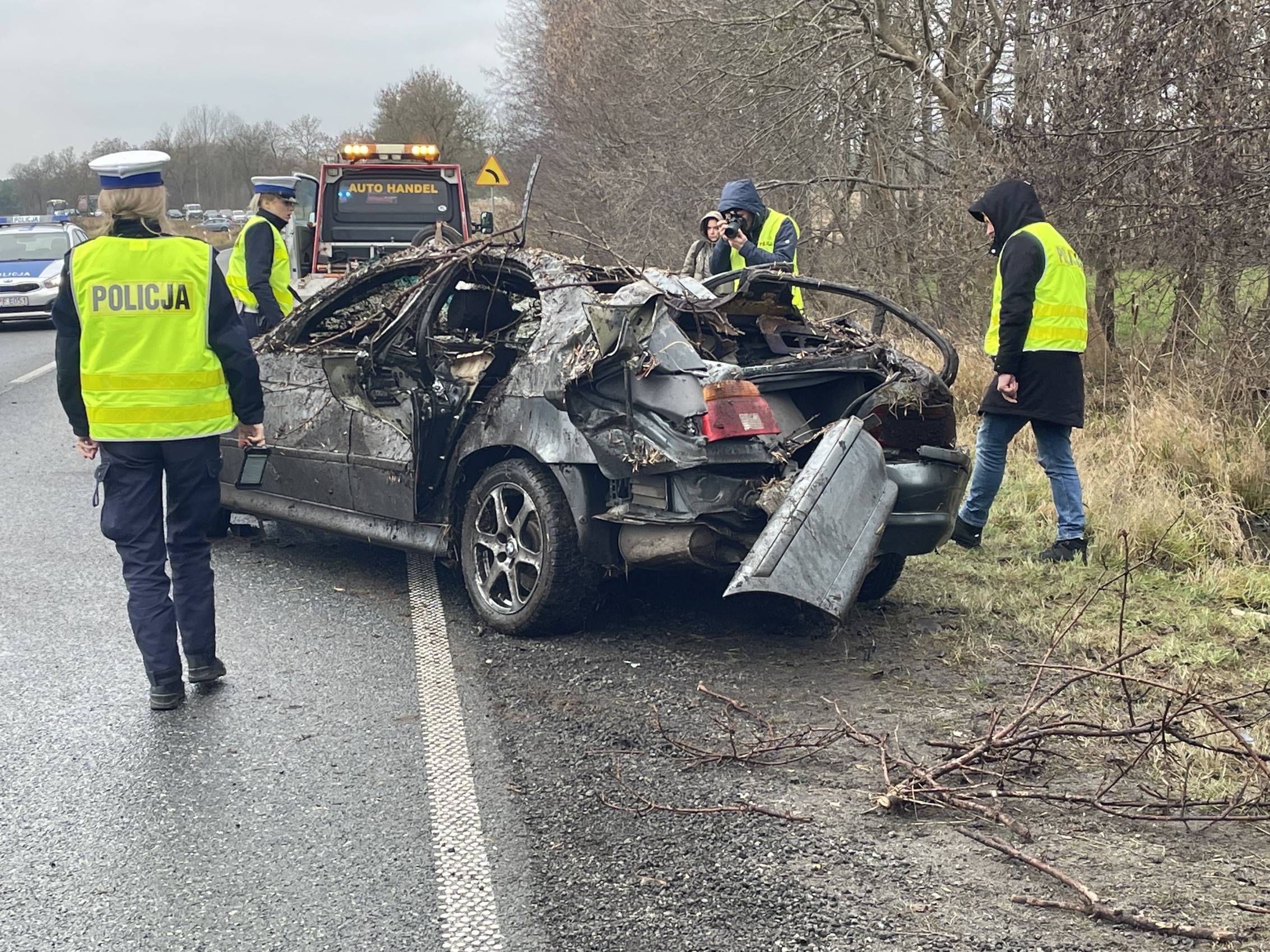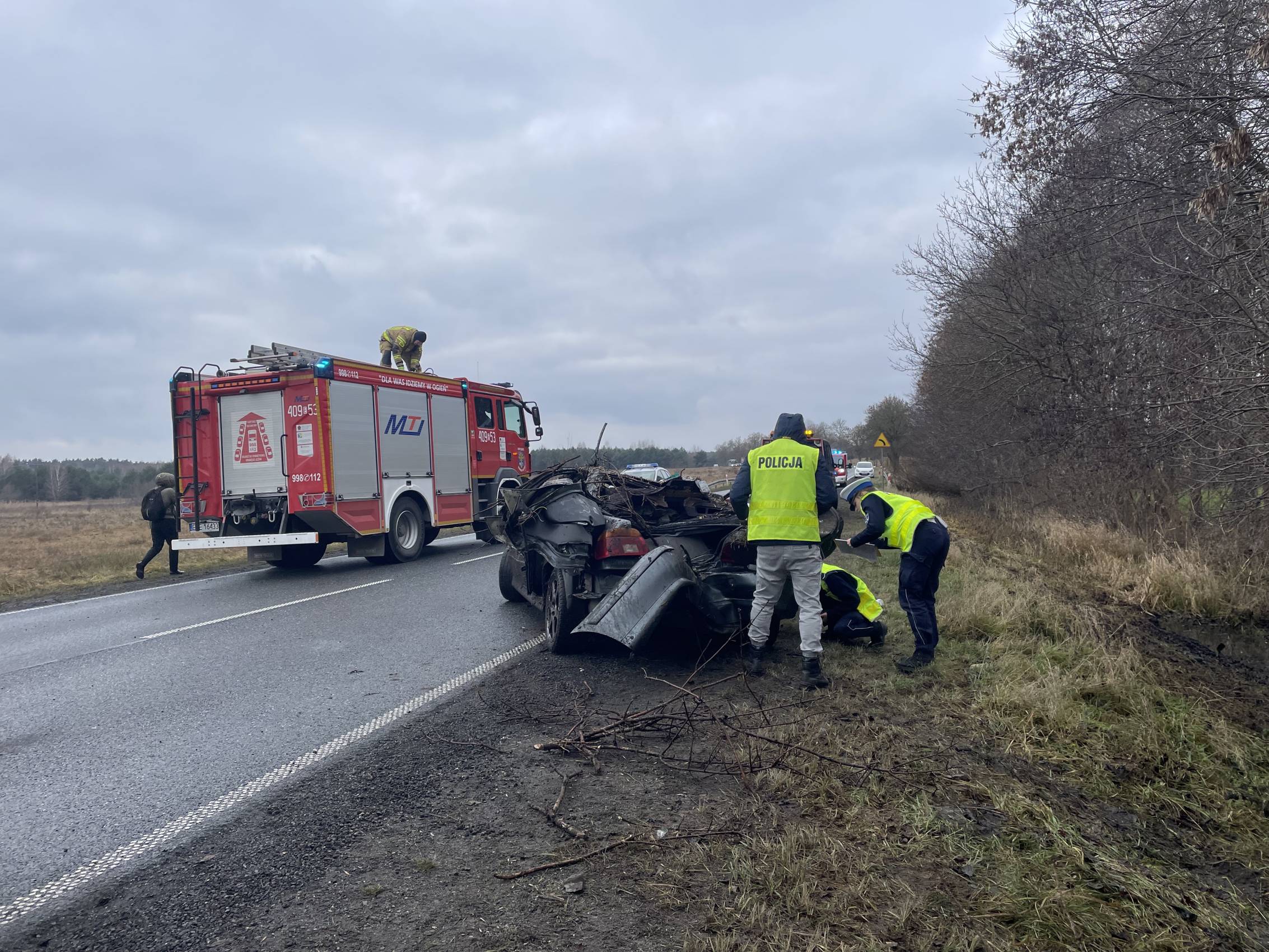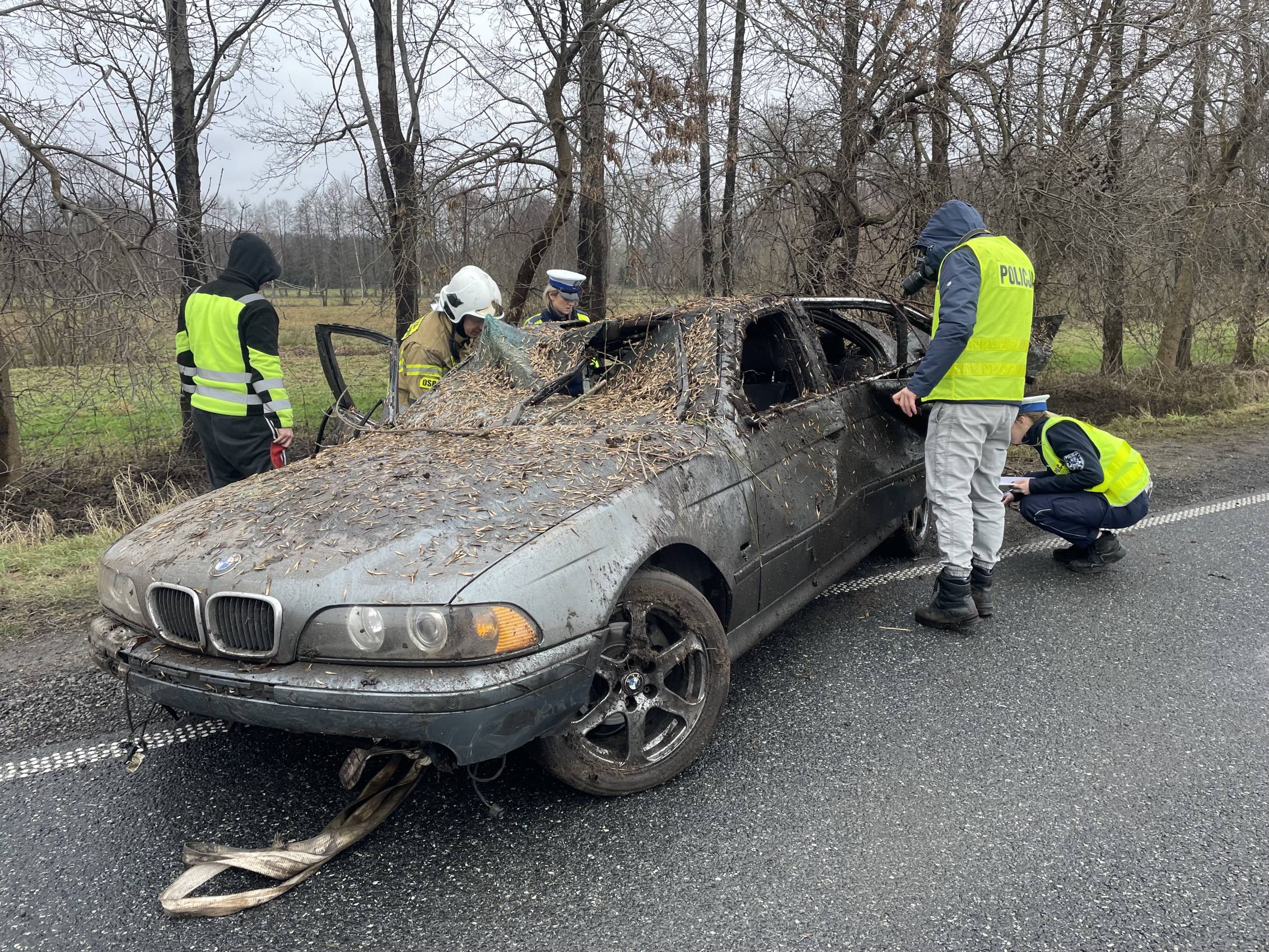 Na miejscu pracowali także funkcjonariusze policji, którzy prowadzili czynności mające na celu dokładne ustalenie przyczyn i okoliczności wypadku.