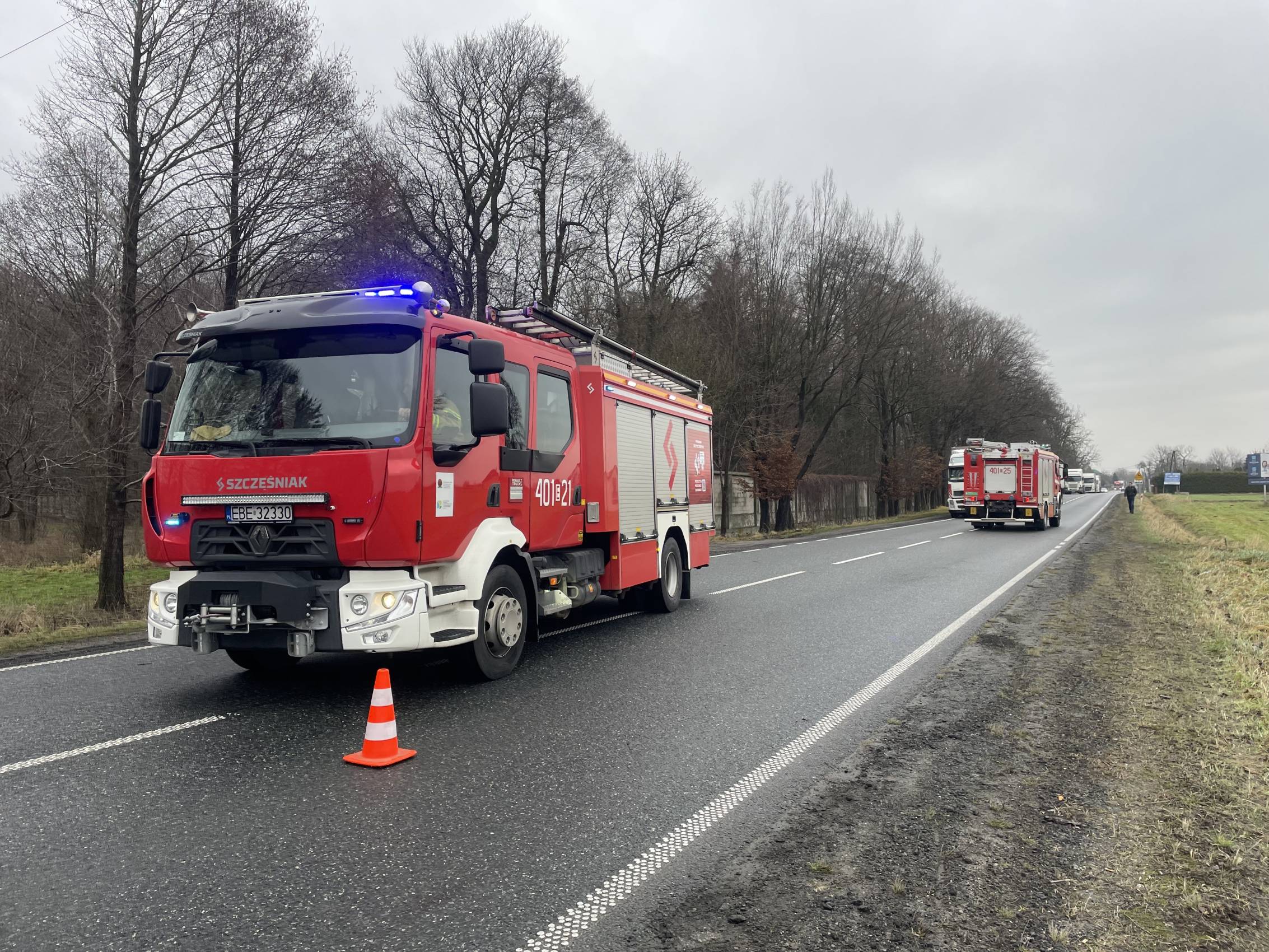 Zgłoszenie o wypadku wpłynęło do stanowiska kierowania Państwowej Straży Pożarnej w Bełchatowie o godzinie 9:24. Na miejsce zadysponowano dwa zastępy z JRG PSP Bełchatów oraz trzy zastępy Ochotniczych Straży Pożarnych – dwa z OSP Kluki oraz jeden z OSP Szczerców. Do działań skierowano również trzy zespoły ratownictwa medycznego oraz policję.