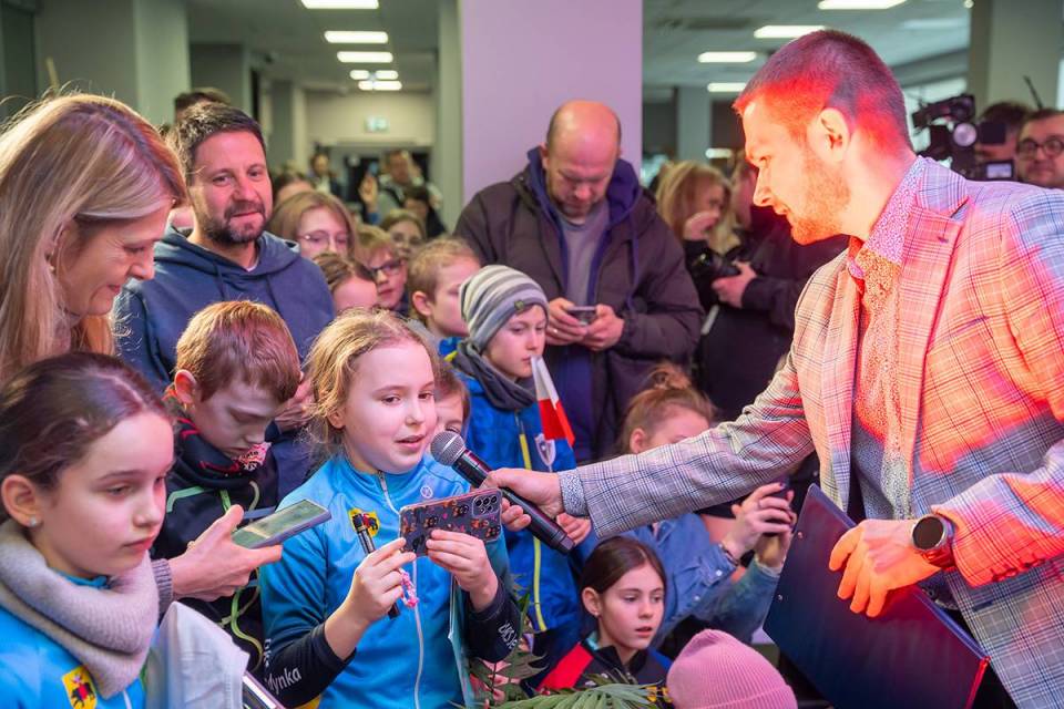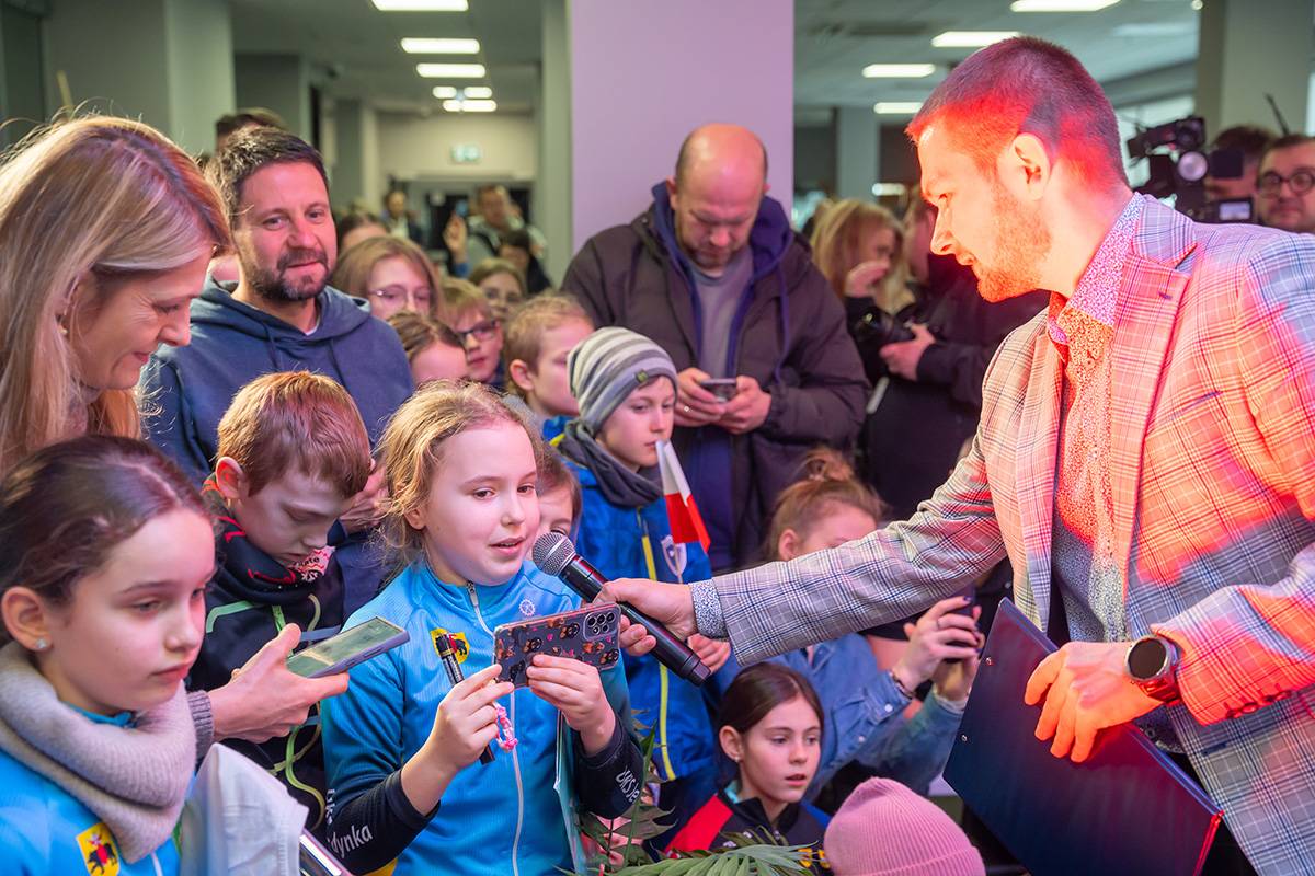 Mistrzowski szpaler przygotowali młodzi tomaszowscy sportowcy na powitanie olimpijczyków. W środę 25 lutego panczeniści: Vladimir Semirunni, Damian Żurek i Karolina Bosiek spotkali się w Arenie Lodowej z mieszkańcami Tomaszowa Mazowieckiego. Był również trener kadry - Roland Cieślak.