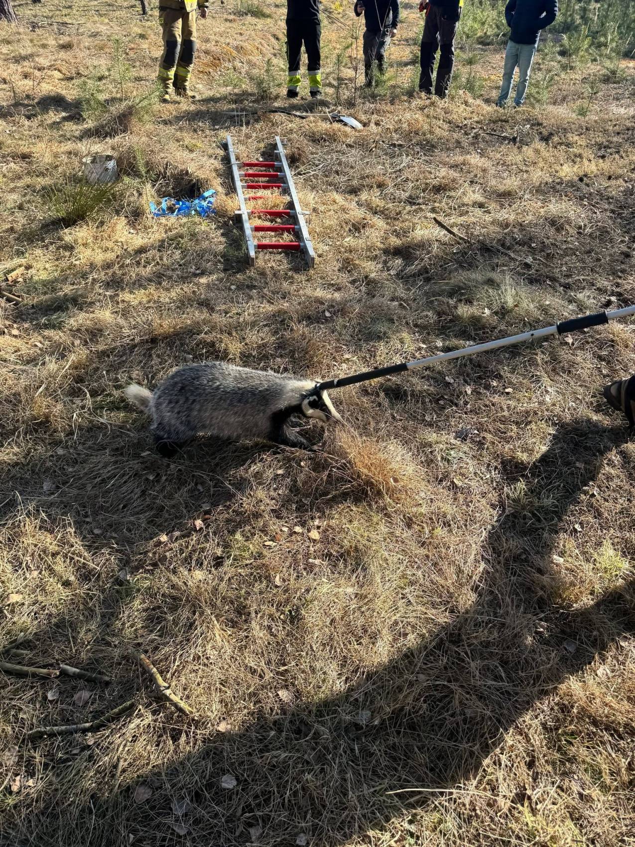 Po dotarciu na miejsce potwierdzono, że zwierzę znajduje się na dnie wąskiej studni i nie jest w stanie samodzielnie się wydostać. Akcja wymagała ostrożności - zarówno ze względu na bezpieczeństwo ratowników, jak i przestraszonego, dzikiego zwierzęcia. Do działań włączono weterynarza, który nadzorował przebieg interwencji i ocenił stan borsuka po wydobyciu.