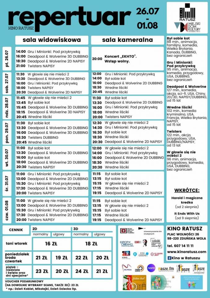 Repertuar kina w Ratuszu od piątku, 26 lipca26 lipca (piątek)