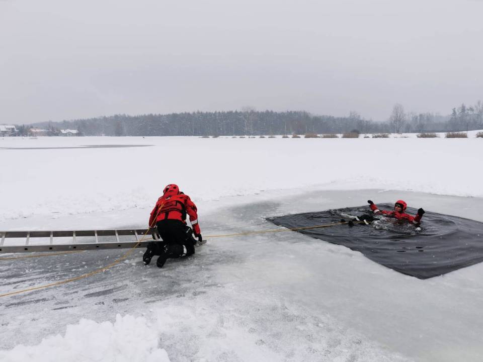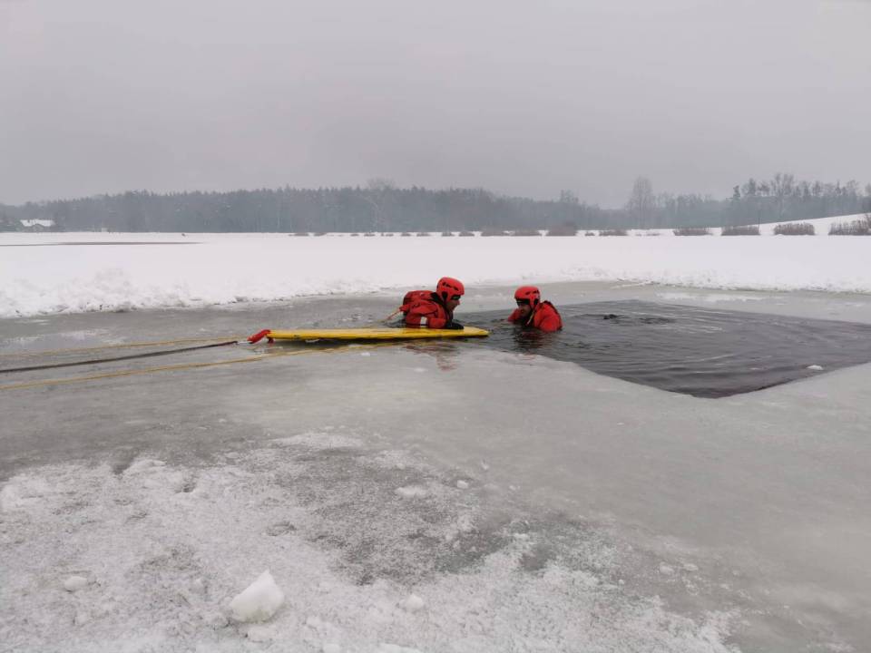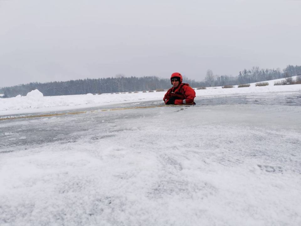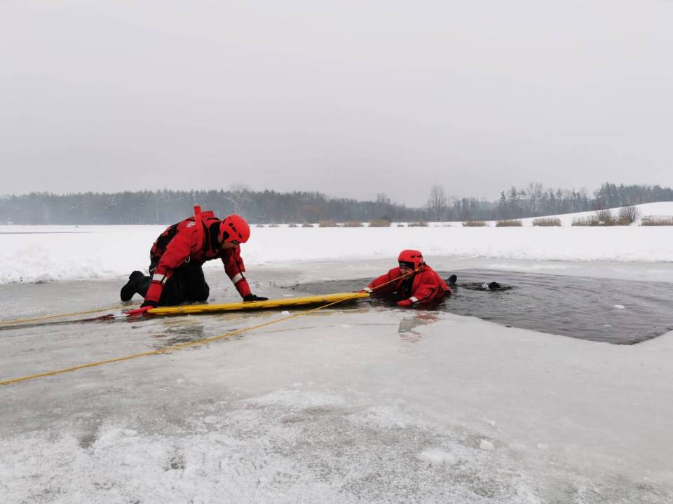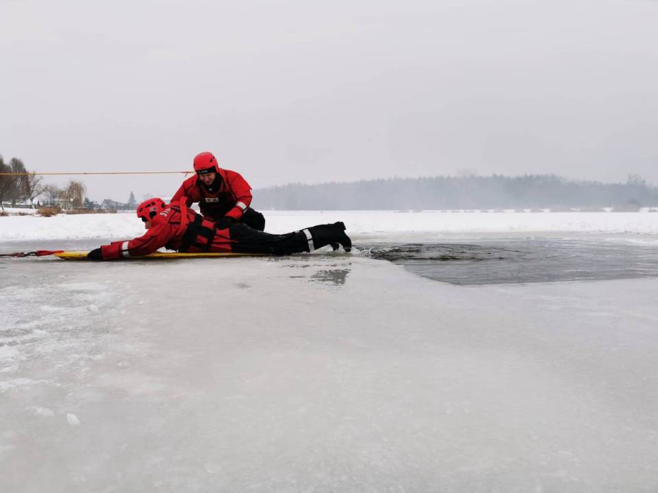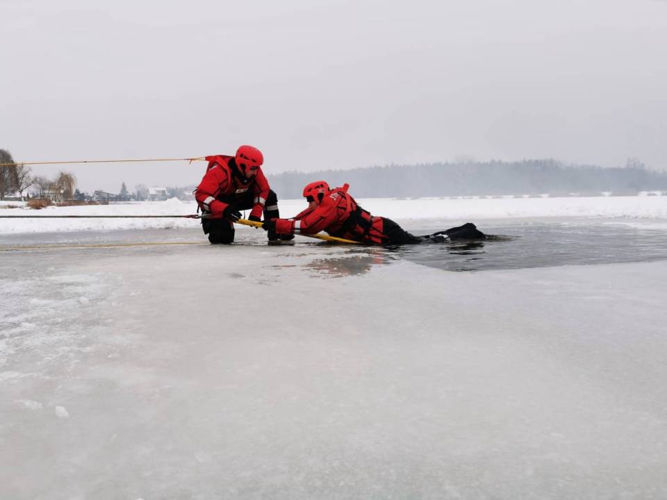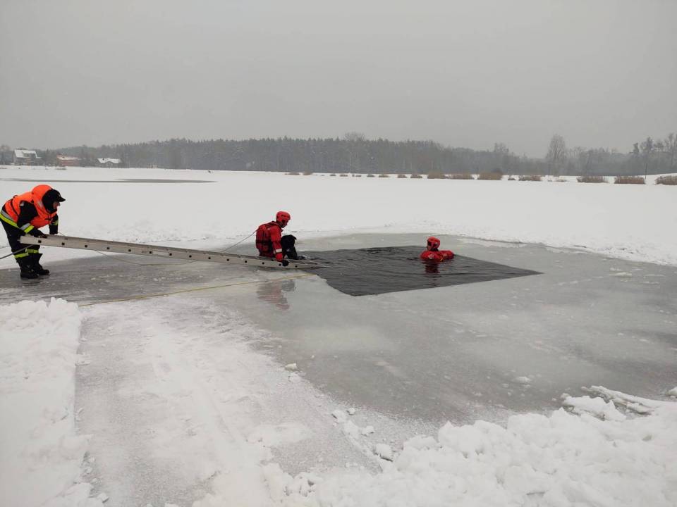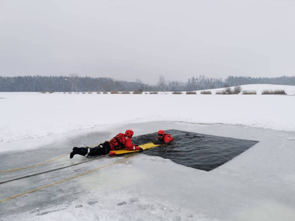 - Pod żadnym pozorem nie należy wchodzić na lód, jeżeli nie mamy pewności, że jesteśmy bezpieczni - mówi kpt. Łukasz Aleksandrowicz. - Dziś lód na zbiorniku ma około 5 cm grubości i nie jest wystarczająco gruby, aby można na niego bezpiecznie wchodzić. Miejsce, w którym ćwiczyliśmy jest zabezpieczone taśmą ostrzegawczą.