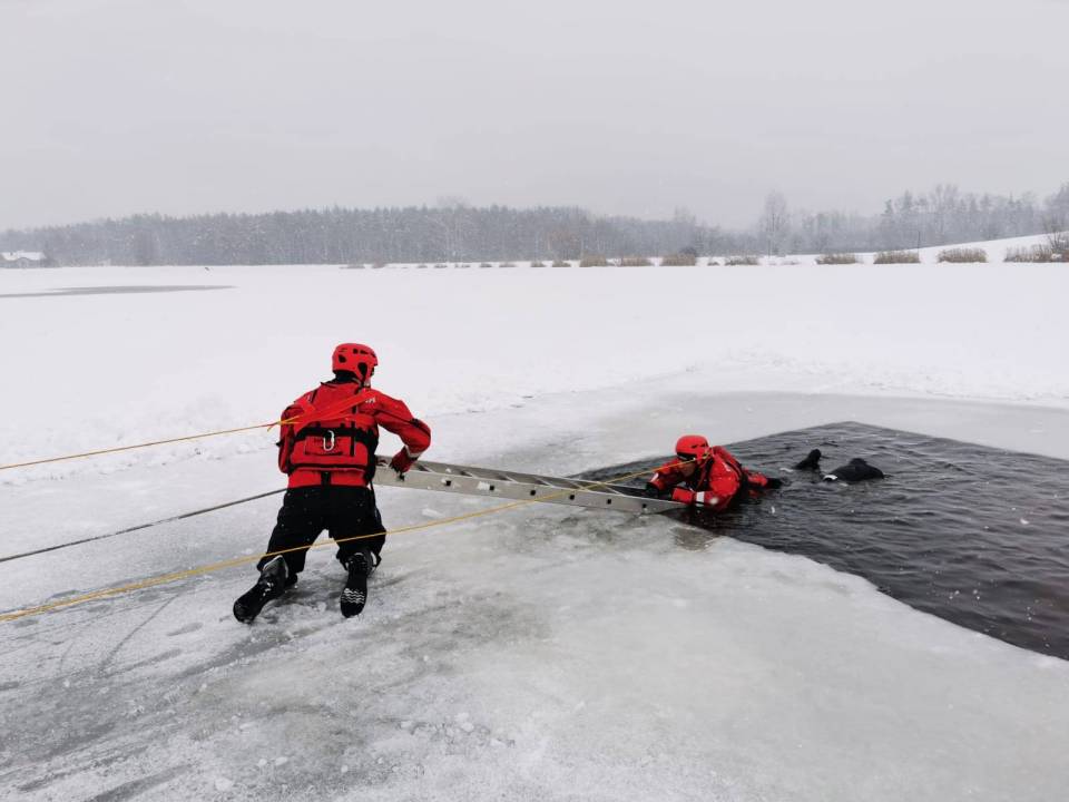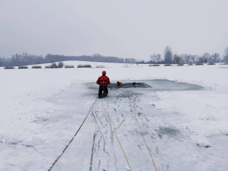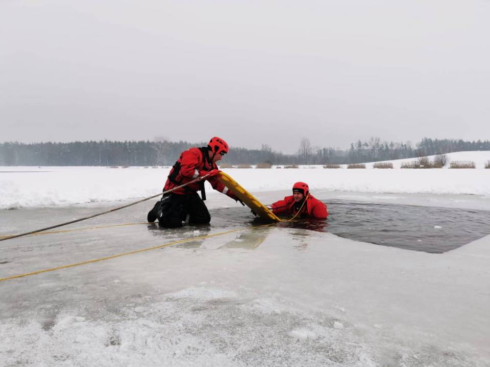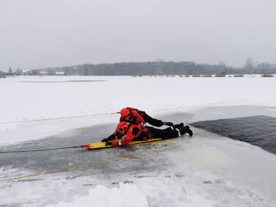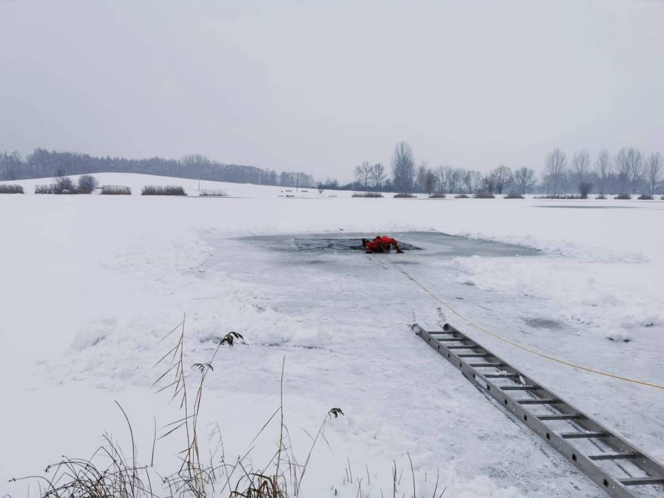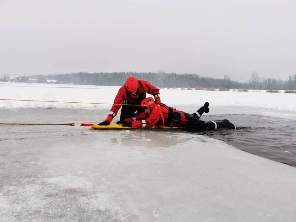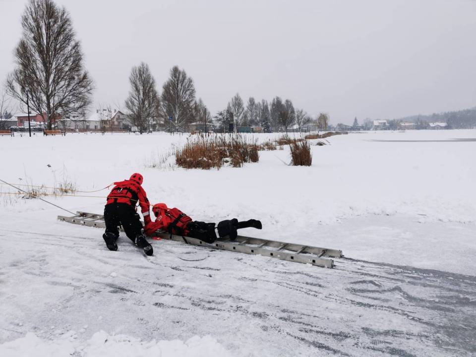 - Pod żadnym pozorem nie należy wchodzić na lód, jeżeli nie mamy pewności, że jesteśmy bezpieczni - mówi kpt. Łukasz Aleksandrowicz. - Dziś lód na zbiorniku ma około 5 cm grubości i nie jest wystarczająco gruby, aby można na niego bezpiecznie wchodzić. Miejsce, w którym ćwiczyliśmy jest zabezpieczone taśmą ostrzegawczą.