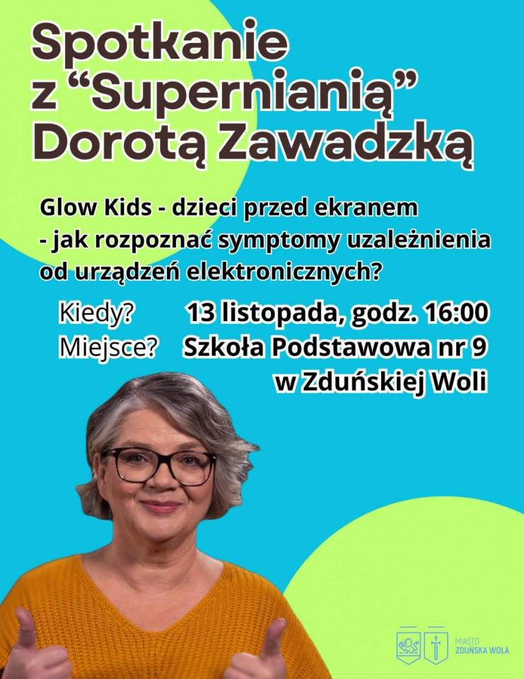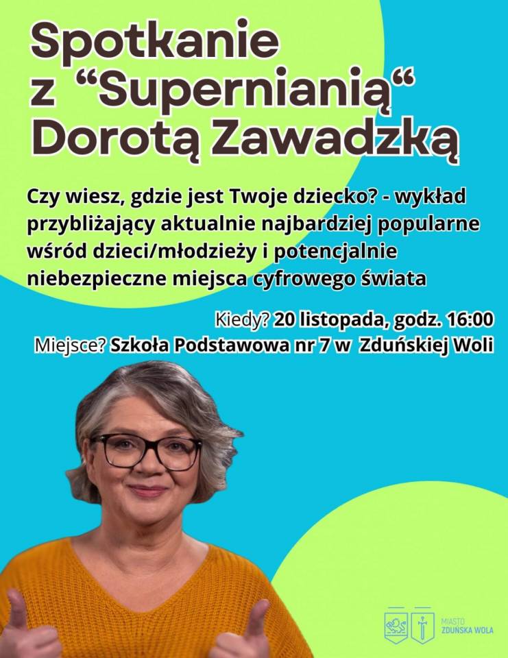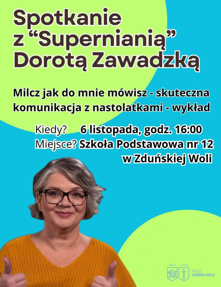 W Zduńskiej Woli w listopadzie będzie można spotkać się z Dorotą Zawadzką, czyli telewizyjną Supernianią. Zaplanowano warsztaty i wykłady psycholożki w szkołach podstawowych nr 7, nr 9, nr 11 i nr 12. Pierwsze spotkanie już w środę, 6 listopada, ostatnie 20 listopada. Każde będzie miało inny temat przewodni.