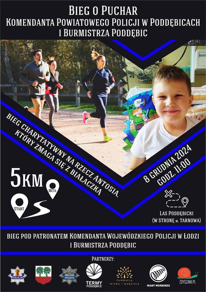 Celem Biegu o Puchar Komendanta Powiatowego Policji w Poddębicach i Burmistrza Poddębic jest wsparcie finansowe leczenia 6-letniego Antosia, synka pracownicy poddębickiej komendy, który dzielnie walczy z białaczką.