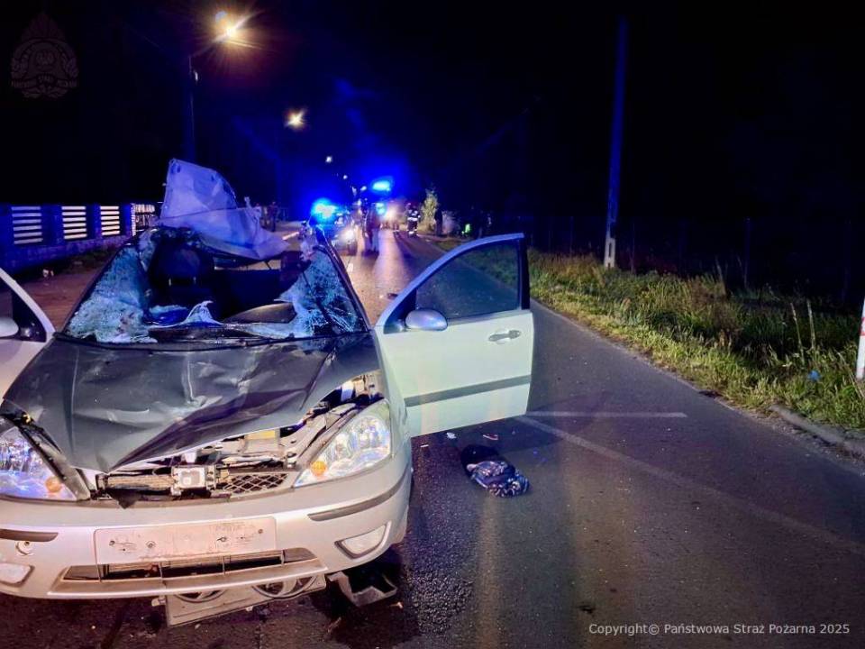Zgłoszenie o wypadku na ulicy Reymonta wpłynęło do służb tuż przed godziną 19. Na miejsce skierowano policję, straż pożarną i pogotowie. Ze wstępnych ustaleń wynika, że w trakcie jazdy fordem na jezdnię wybiegły dwa konie. Pojazd zderzył się z jednym ze zwierząt, co doprowadziło do poważnych uszkodzeń auta i obrażeń u kierowcy.
