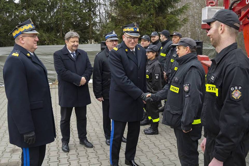 Razem z marszałkiem województwa strażaków z Nowego Adamowa odwiedzili też zastępca komendanta głównego PSP nadbrygadier Krzysztof Hejduk i komendant wojewódzki PSP w Łodzi nadbrygadier Grzegorz Janowski.