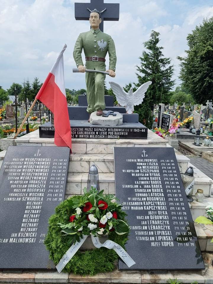 Jednym z nich jest pomnik w Pieńkach Karlińskich, gdzie spoczywają 52 osoby rozstrzelane przez nazistów. Wieńce złożyli tu wspólnie w imieniu mieszkańców Ziemi Piotrkowskiej Starosta, Przewodniczący Rady oraz Wójt Gminy Moszczenica Marceli Piekarek. Znicz pamięci zapalono także na wolborskim cmentarzu, gdzie upamiętniono ofiary mordu faszystów partyzantów, jak tych okolicznych mieszkańców, którzy w 1943 i 1944 roku za pomoc partyzantom rozstrzelani zostali w Pieńkach Karlińskich i w lesie pod Rakowem.