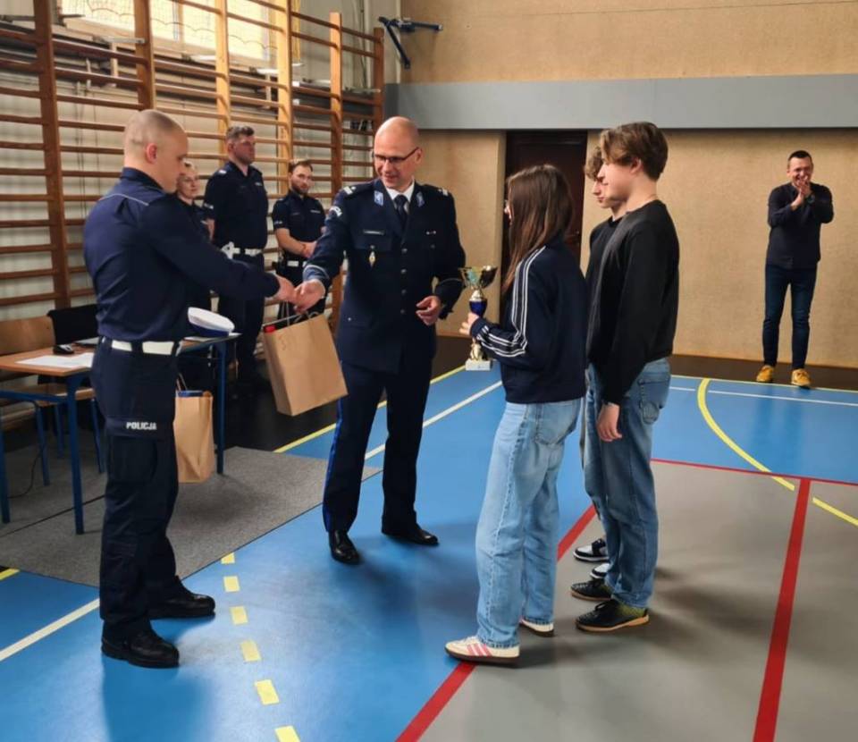 Tak liczny udział młodzieży ze szkół podstawowych bardzo ucieszył I Zastępcę Komendanta Powiatowego Policji w Radomsku podinspektora Przemysława Mazurkiewicza, który wręczał nagrody uczestnikom turnieju.