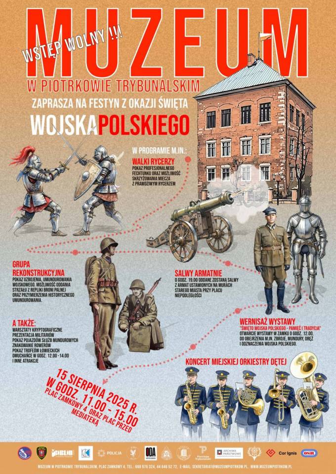 - Muzeum w Piotrkowie Trybunalskim przeniesie nas w świat rycerzy, żołnierzy i oręża! Wśród wielu atrakcji będą: walki rycerzy, rekonstrukcje historyczne – broń, mundury, repliki, salwy armatnie na murach starego miasta (godz. 19). Zaplanowano także wernisaż wystawy pt. „Święto Wojska Polskiego – pamięć i tradycja" (godz. 12, sala II p. w zamku) i koncert Miejskiej Orkiestry Dętej - przekazują piotrkowscy urzędnicy.