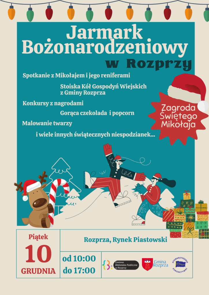 W okresie bożonarodzeniowym wiele miast i miasteczek organizuje dla swoich mieszkańców bożonarodzeniowe kiermasze i jarmarki. Nie inaczej będzie w gminie Rozprza! Już teraz wójt Janusz Jędrzejczak wspólnie z pracownikami Gminnej Biblioteki Publiczną w Rozprzy oraz Stowarzyszeniem EuroAktywni zapraszają na takie wydarzenie.