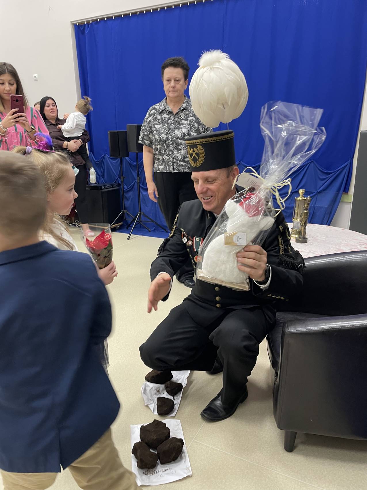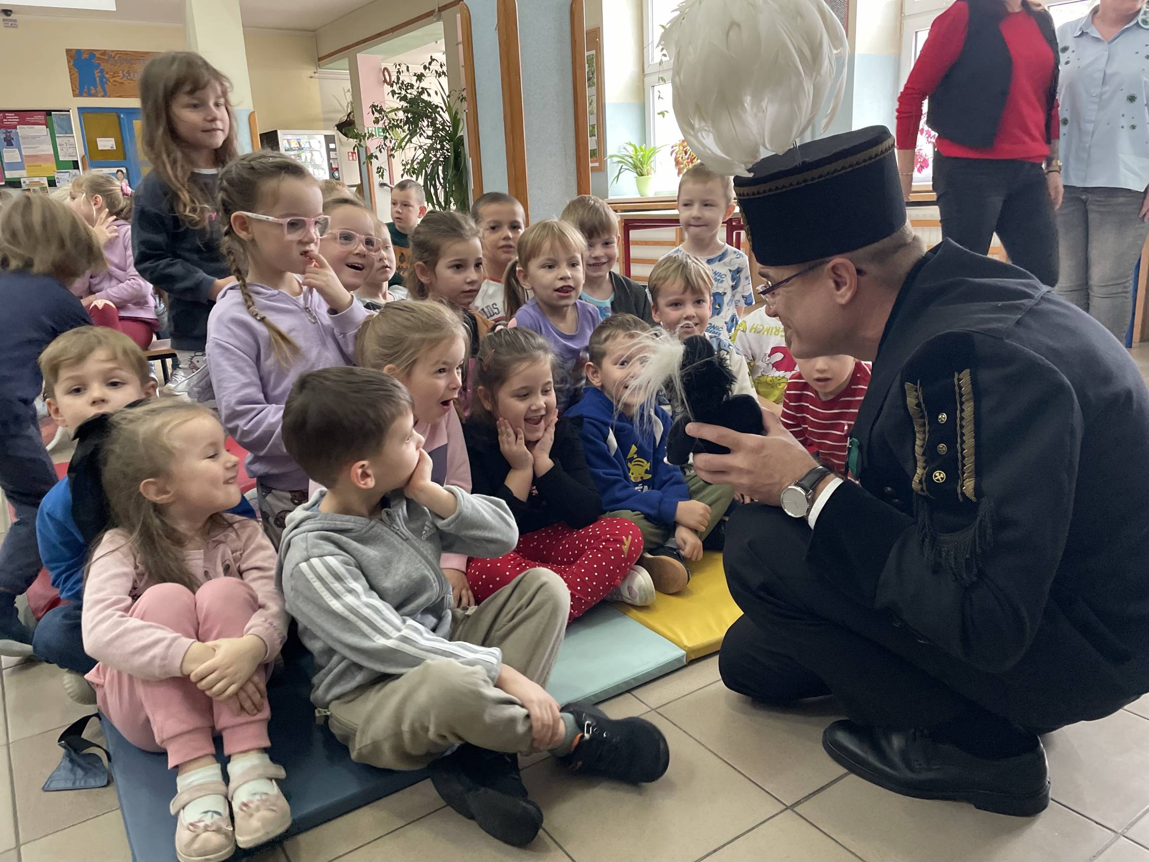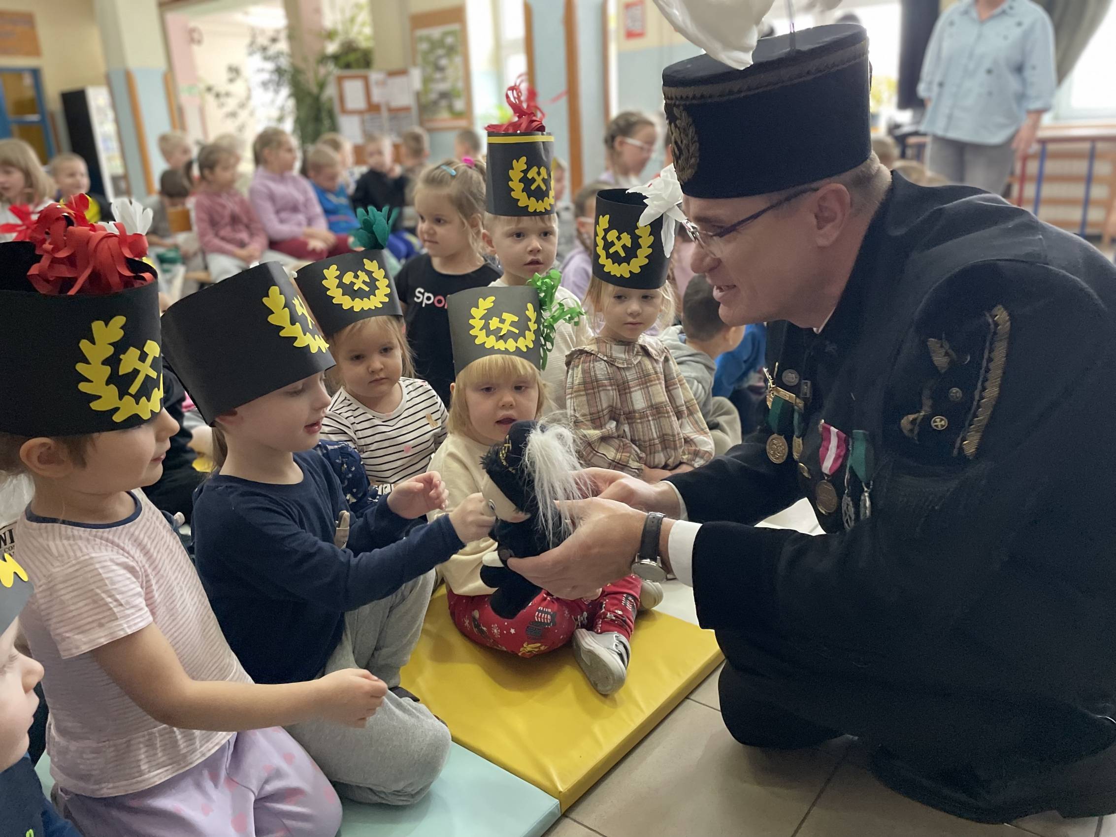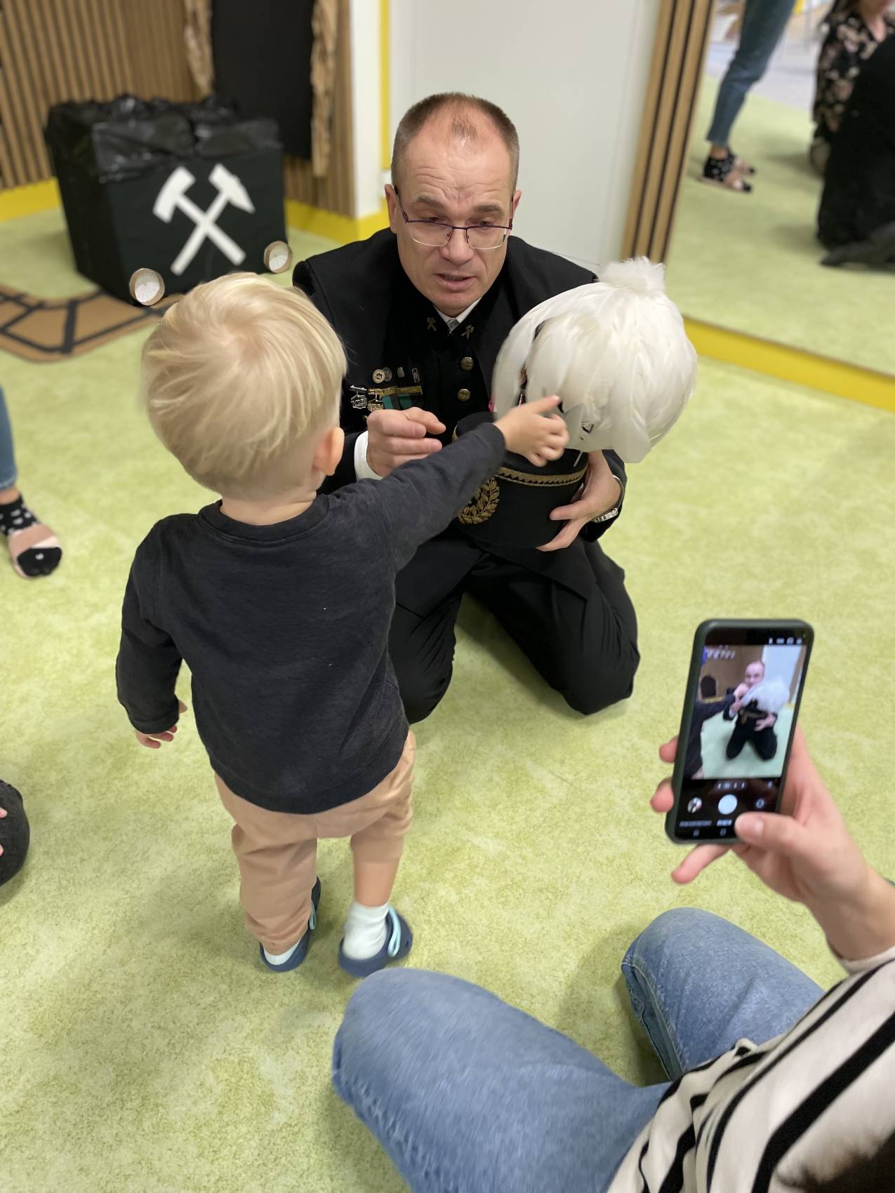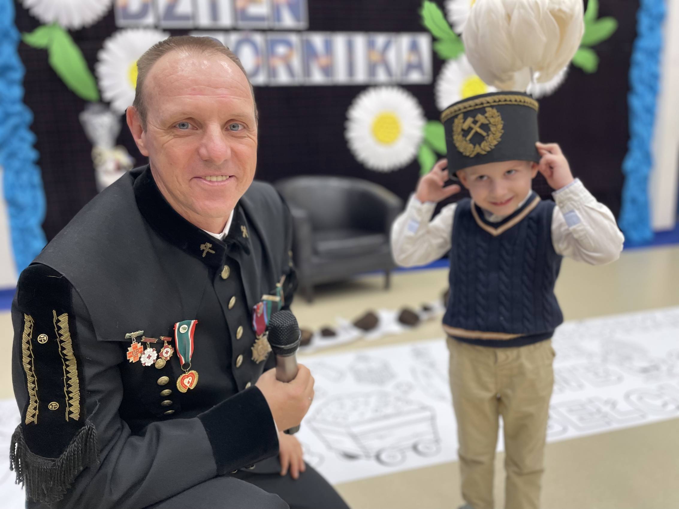 Radosław Pełka miał w tym roku wyjątkowe zadanie, bo spotkał się również z… publicznością żłobkową. Tam górnicza edukacja bardzo szybko zamieniła się w radosną zabawę - głównie za sprawą Gwarka, małej pluszowej przytulanki-górnika, który błyskawicznie podbił serca najmłodszych i przełamał pierwsze lody.