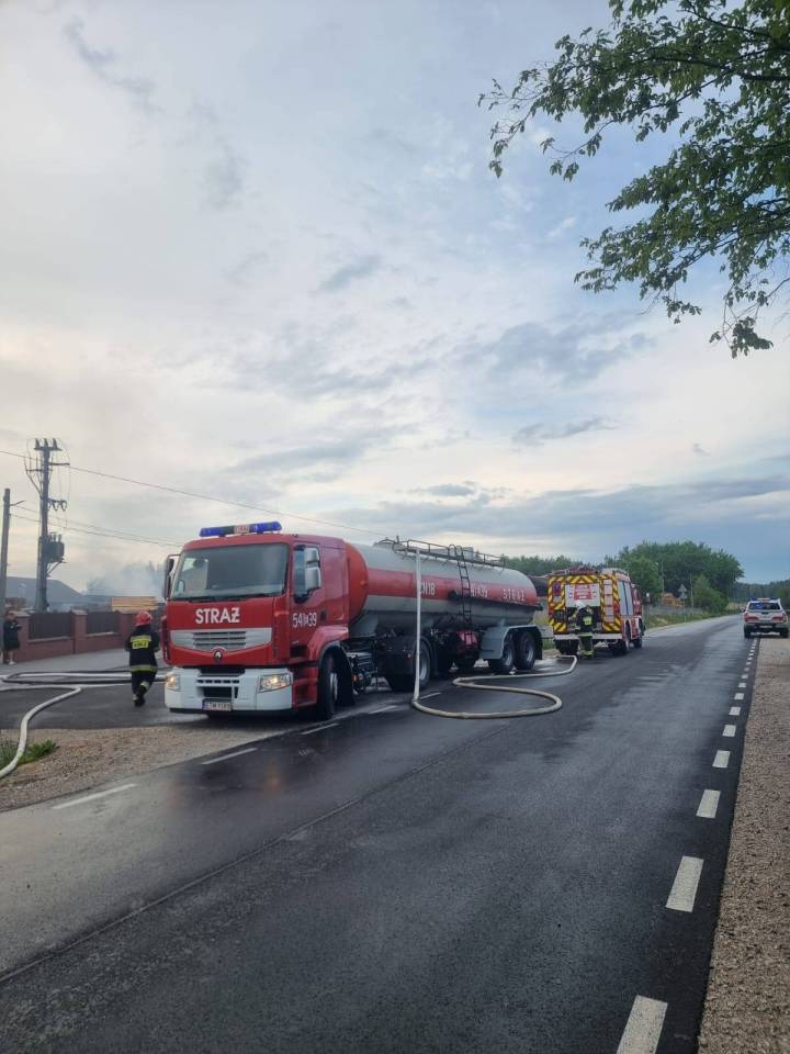 Zgłoszenie o pożarze wpłynęło do służb ratunkowych o godzinie 16:53. Na miejsce natychmiast skierowano siły i środki z kilku jednostek – 3 zastępy PSP z Opoczna oraz cysternę z komendy PSP w Tomaszowie Mazowieckim. W sumie w akcji brało udział aż 16 zastępów straży pożarnej – 10 z Państwowej Straży Pożarnej oraz 6 z Ochotniczych Straży Pożarnych.