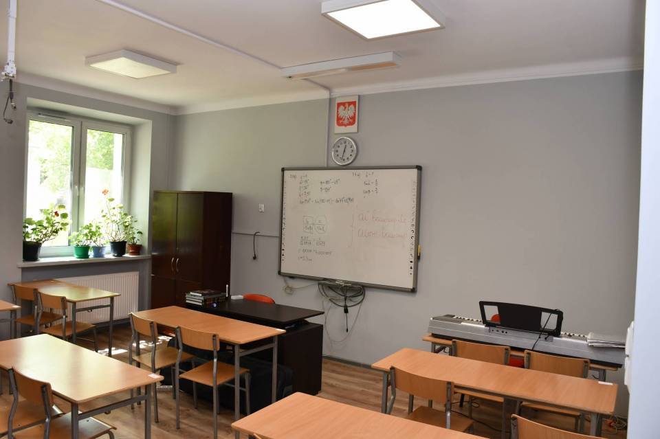 - Wymienione zostały okna, hydraulika, elektryka, węzeł cieplny oraz sanitariaty. Sale lekcyjne zyskały nowy wygląd. Teraz prace skupiają się w części podpiwniczenia placówki i można powiedzieć, że to już wykończeniówka - informują pracownicy Biura Rozwoju i Inwestycji oraz dodają: - Kompleksowo wyremontowaliśmy pierwsze piętro oraz parter. W tej chwili trwają roboty w piwnicach. Zostaje nam jeszcze do wykończenia zagospodarowanie terenu, czyli ułożenie kostki wokół budynku, częściowy remont dachu łącznika oraz dokończenie prac wykończeniowych.