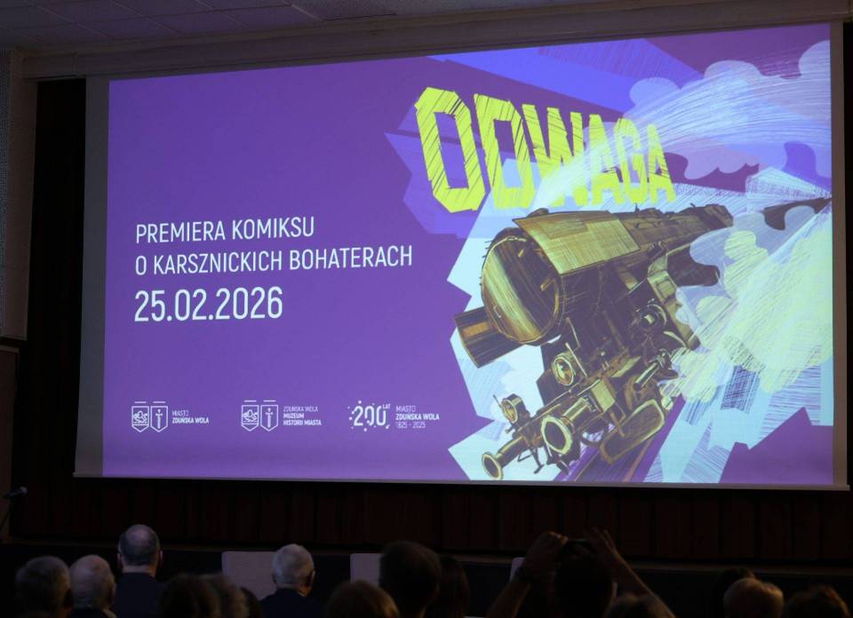 Jak zainteresować młodzież historią? W Zduńska Wola postawiono na komiks. „Odwaga" to nowa publikacja poświęcona kolejarzom – żołnierzom Armia Krajowa, którzy 25 lutego 1944 roku zostali straceni przez niemieckiego okupanta. Premiera wydawnictwa odbyła się 25 lutego 2026 roku w domu kultury na osiedlu Karsznice i była jednym z głównych punktów obchodów 82. rocznicy egzekucji Kazimierza Kałużewskiego i Juliusza Sylli.