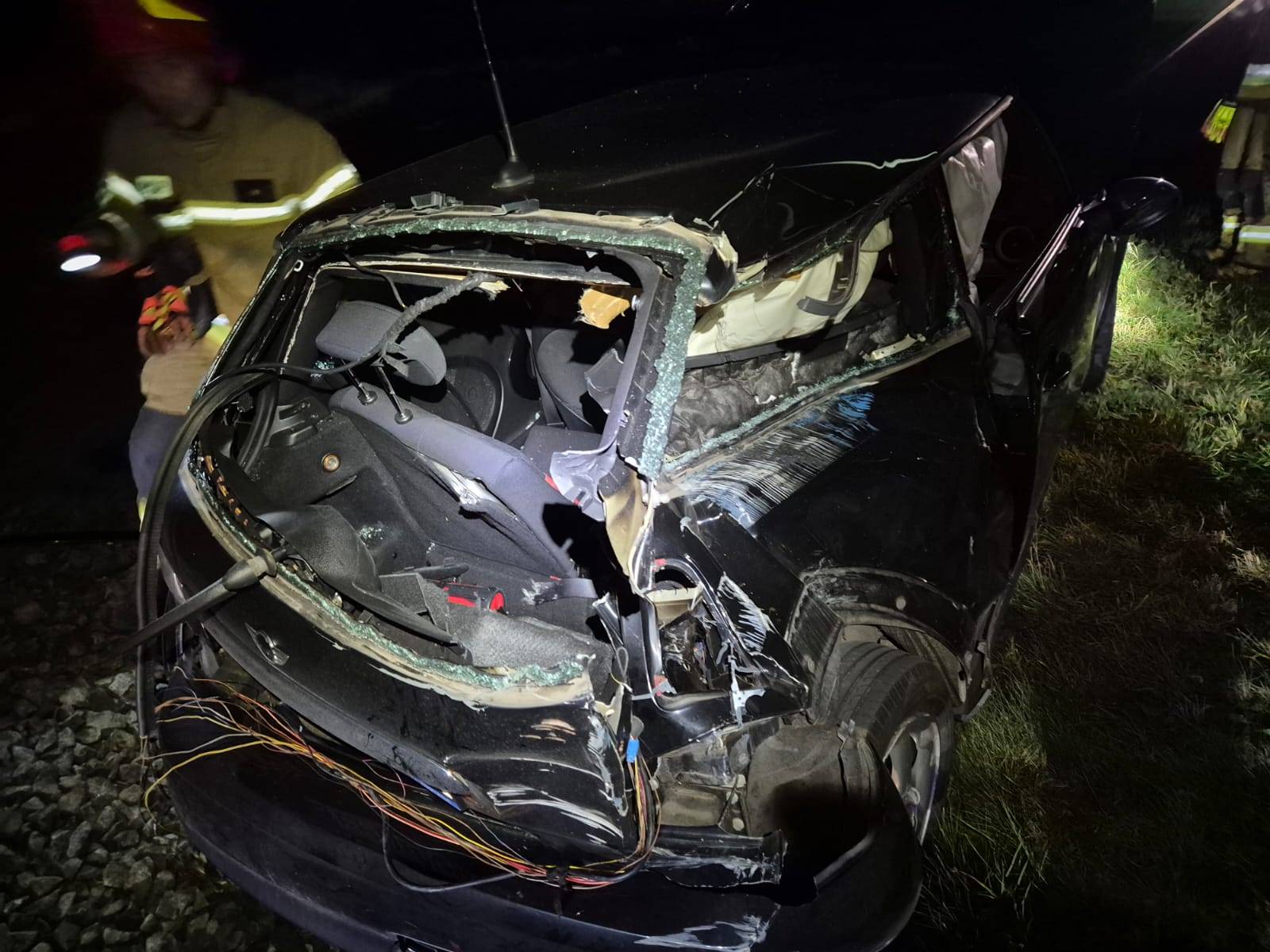 Horror na torach! Mini Cooper wjechał wprost pod nadjeżdżający pociąg towarowy