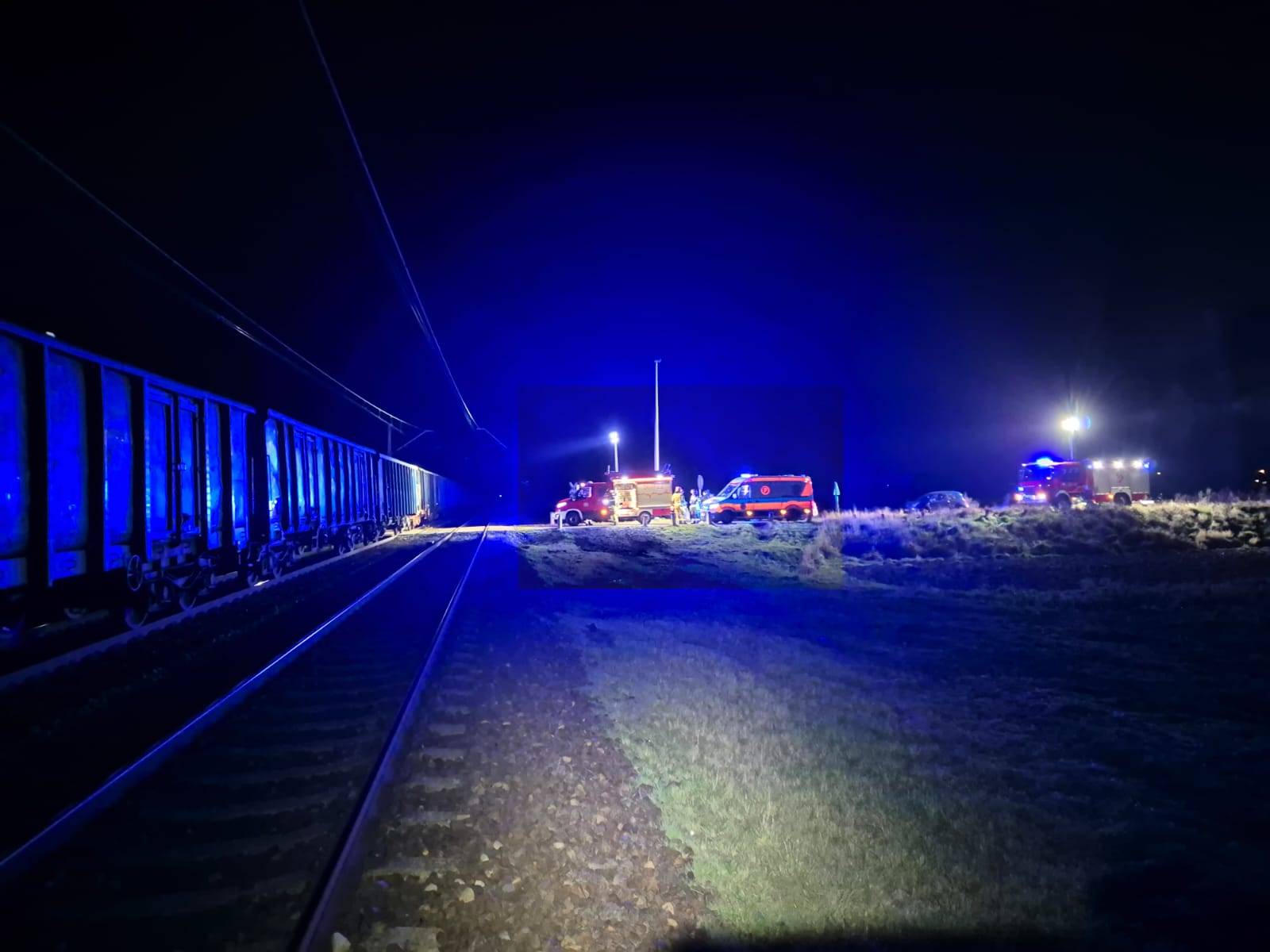 Na czas akcji ratunkowej zarówno ruch kolejowy, jak i drogowy został całkowicie wstrzymany. Na miejscu pracowały dwa zastępy z JRG Poddębice, Zespół Ratownictwa Medycznego, policja z Poddębic, Straż Ochrony Kolei, a także zawiadowcy ds. inżynierii ruchu oraz ds. drogowych.