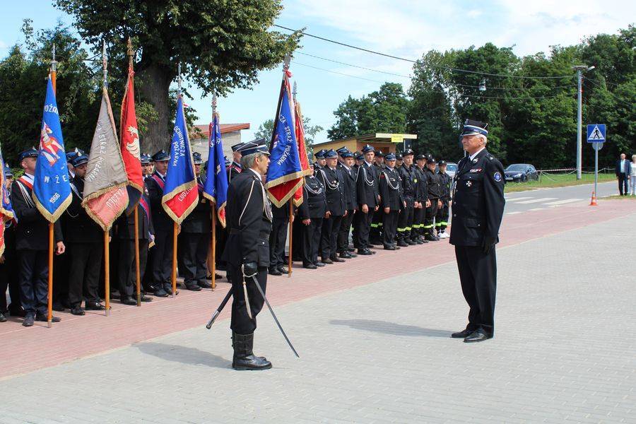 Oficjalnego powitania pocztów sztandarowych, pododdziałów strażackich, gości i uczestników dokonał prezes jednostki druh Artur Szymczak.