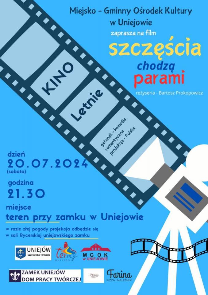 W sobotni wieczór Uniejów zaprasza wszystkich kinomaniaków na letnie kino plenerowe. Tym razem organizatorzy proponują polską komedię romantyczną Bartosza Prokopowicza ,,Szczęścia chodzą parami". Start o godzinie 21:30 przy uniejowskim zamku.