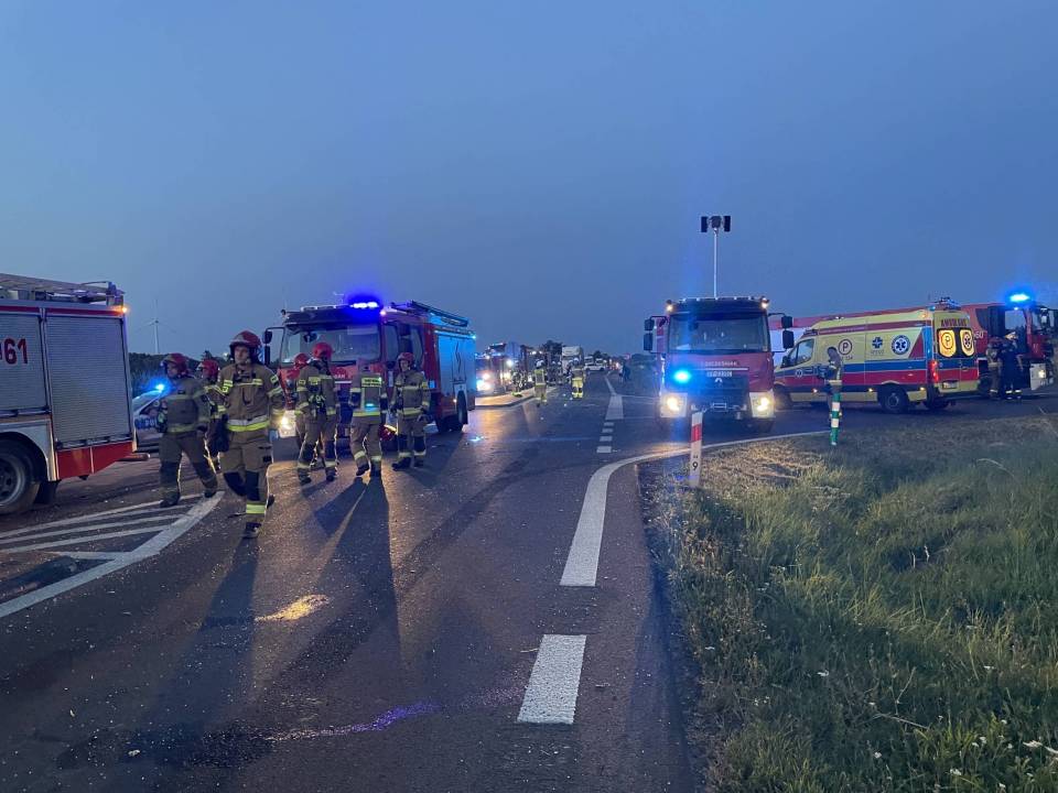 Kierujący skodą został przetransportowany helikopterem do szpitala. W wyniku zderzenia doszło do rozszczelnienia cysterny z gazem, która stanęła w płomieniach. Gaszenie, następnie wszelkie niezbędne czynności związane z zabezpieczeniem i przeładowywaniem niebezpiecznego ładunku trwały do godzin przedpołudniowych dnia następnego. Akcja strażaków zakończyła się w piątek, 15 sierpnia o godzinie 11.56. W działaniach wzięło udział 14 jednostek PSP oraz 11 zastępów lokalnych OSP, łącznie to blisko 110 osób.