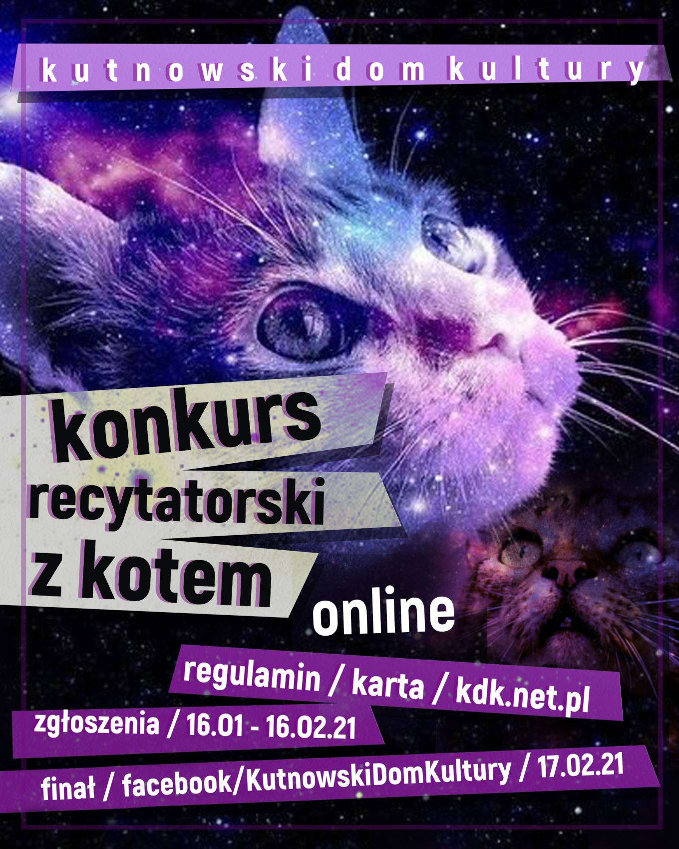 Szczegóły, regulamin i karta zgłoszeniowa dostępne na stronie KDK: https://kdk.net.pl/event/konkurs-recytatorski-z-kotem-2021/.