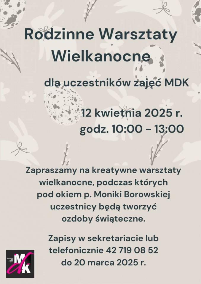 Młodzieżowy Dom Kultury w Zgierzu zaprasza do wspólnej zabawy w przygotowywanie świątecznych dekoracji. Warsztaty odbędą się 12 kwietnia, a organizator zapewnia wszystkie materiały i opiekę instruktora.