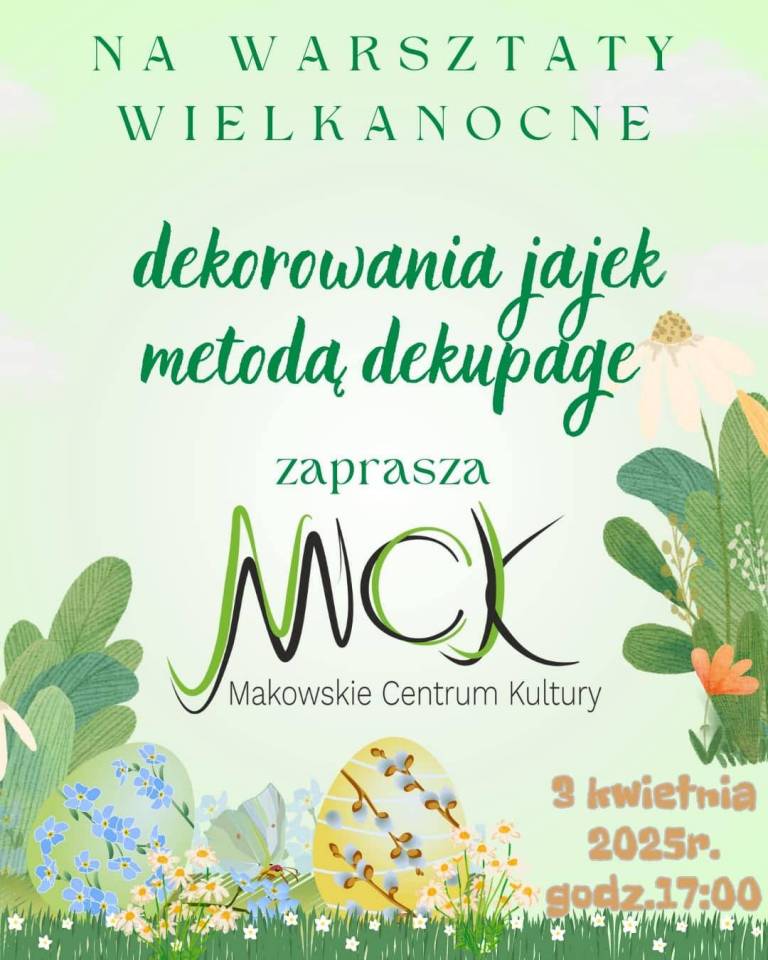 Mogą być ozdobą wielkanocnego koszyczka, ale i pięknym świątecznym prezentem. Mowa o pisanek zdobionych techniką decoupage, które pod okiem Grażyny Stasiak, pasjonatki rękodzieła, będą wykonywać uczestnicy świątecznych warsztatów organizowanych przez Makowskie Centrum Kultury.