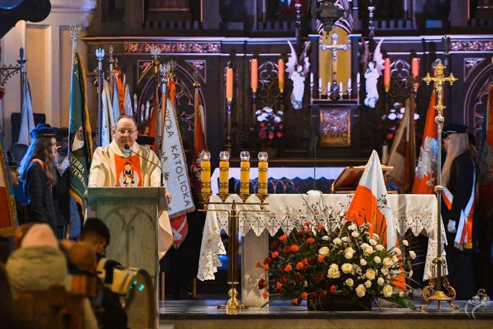 Uroczystości związane ze 106. rocznicą odzyskania przez Polskę niepodległości rozpoczęły się o 16.00 w koście pw. Św. Wawrzyńca. Tuż po niej uczestnicy przemaszerowali na Plac Piłsudskiego.