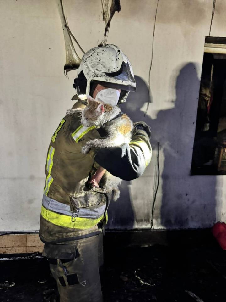 Strażacy, działając w aparatach ochrony dróg oddechowych, weszli do objętego ogniem domu. Z płonących pomieszczeń wynieśli zwierzęta, które nie miały możliwości samodzielnej ucieczki. Jak się później okazało, uratowany został również żółw.