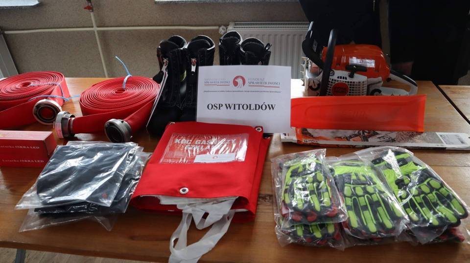 Pozyskane wsparcie finansowe zostało przeznaczone na zakup sprzętu i wyposażenia na rzecz trzech jednostek OSP z terenu naszej gminy – OSP Łanięta, OSP Suchodębie oraz OSP Witoldów. W czwartek, 14 stycznia Wójt Tomasz Szczęsny przekazał uroczyście zakupiony sprzęt przedstawicielom jednostek OSP. W wydarzeniu uczestniczył również reprezentant Funduszu Sprawiedliwości - Poseł na Sejm RP Tadeusz Woźniak oraz Dyrektor Biura Posła Janusz Kołodziejski.