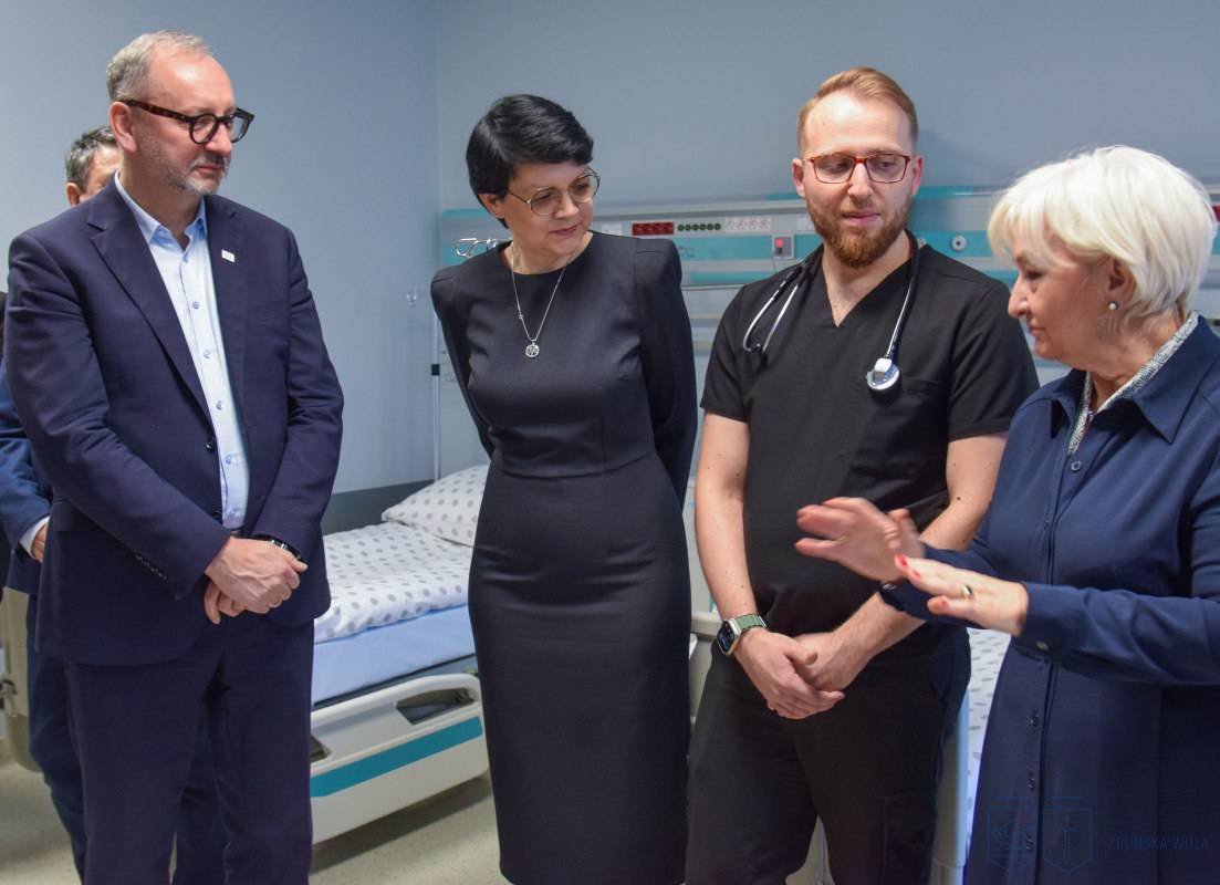 - Mówiłem kiedyś, że w Zduńskiej Woli szpitala jak w Leśnej Górze nie będzie i wychodzi na to, że muszę się teraz z tych słów wycofać -mówił pod będący wrażeniem wyremontowanego oddziału wewnętrznego prezydent Zduńskiej Woli Konrad Pokora. - Pacjenci zyskają komfortowe warunki, a po rozbudowie będzie także dostęp do nowoczesnej diagnostyki. Będzie w Zduńskiej Woli pierwszy rezonans magnetyczny. Nie trzeba będzie jeździć na badania do Sieradza czy Łodzi, bo taki sprzęt będzie u nas w szpitalu.