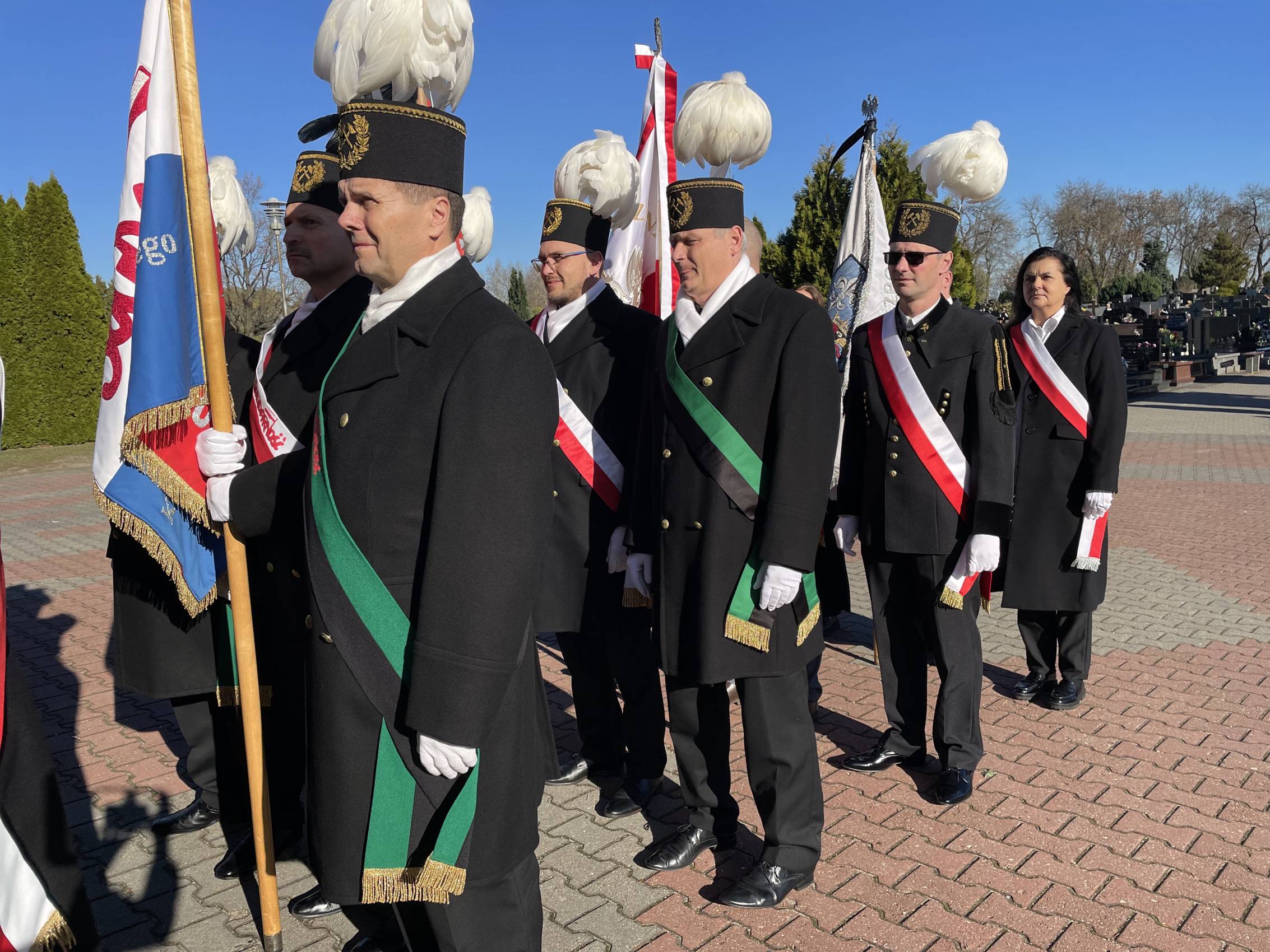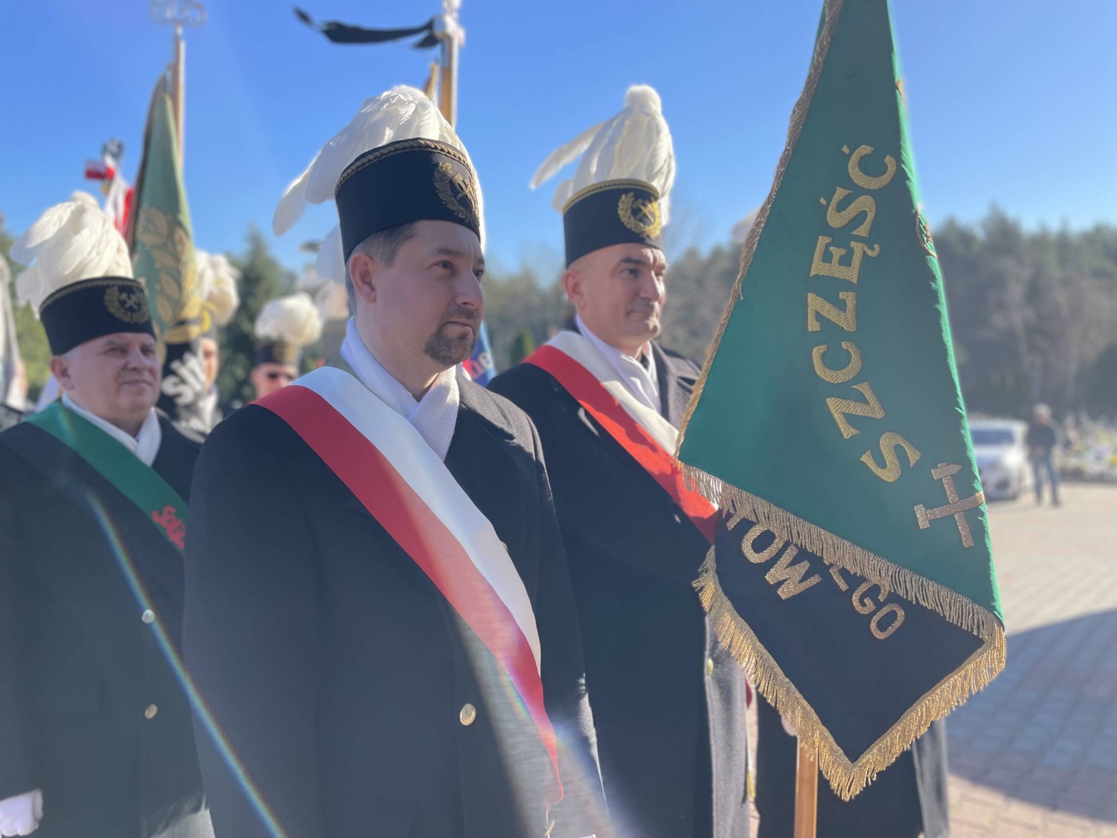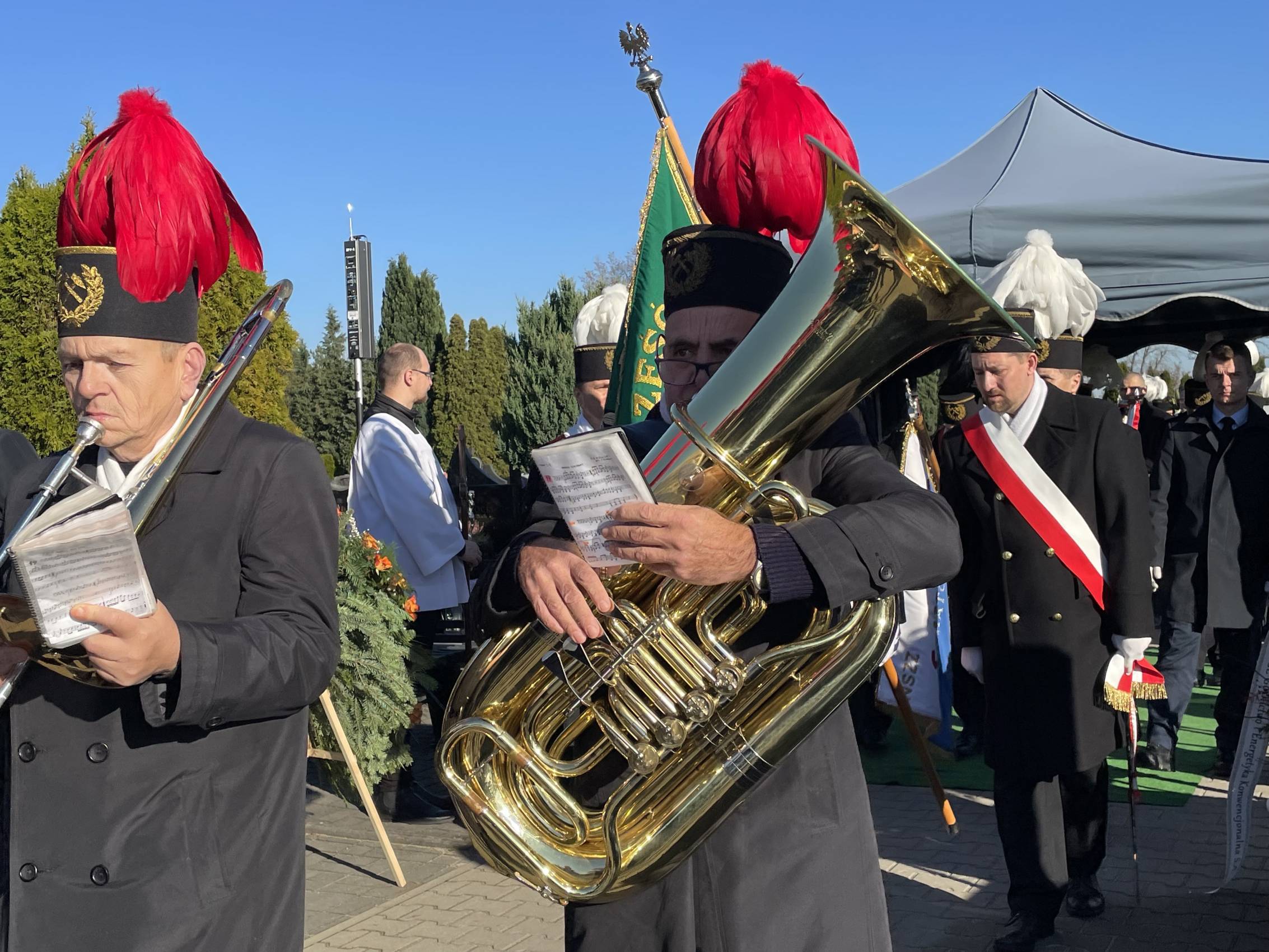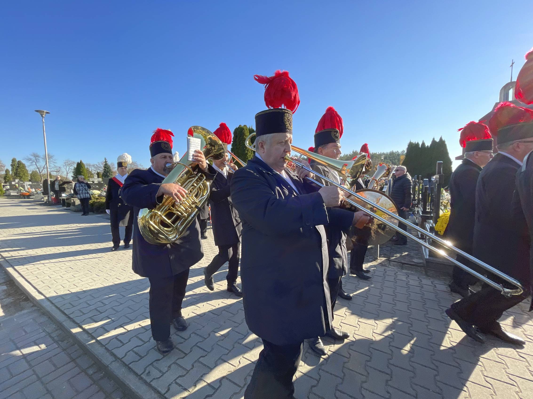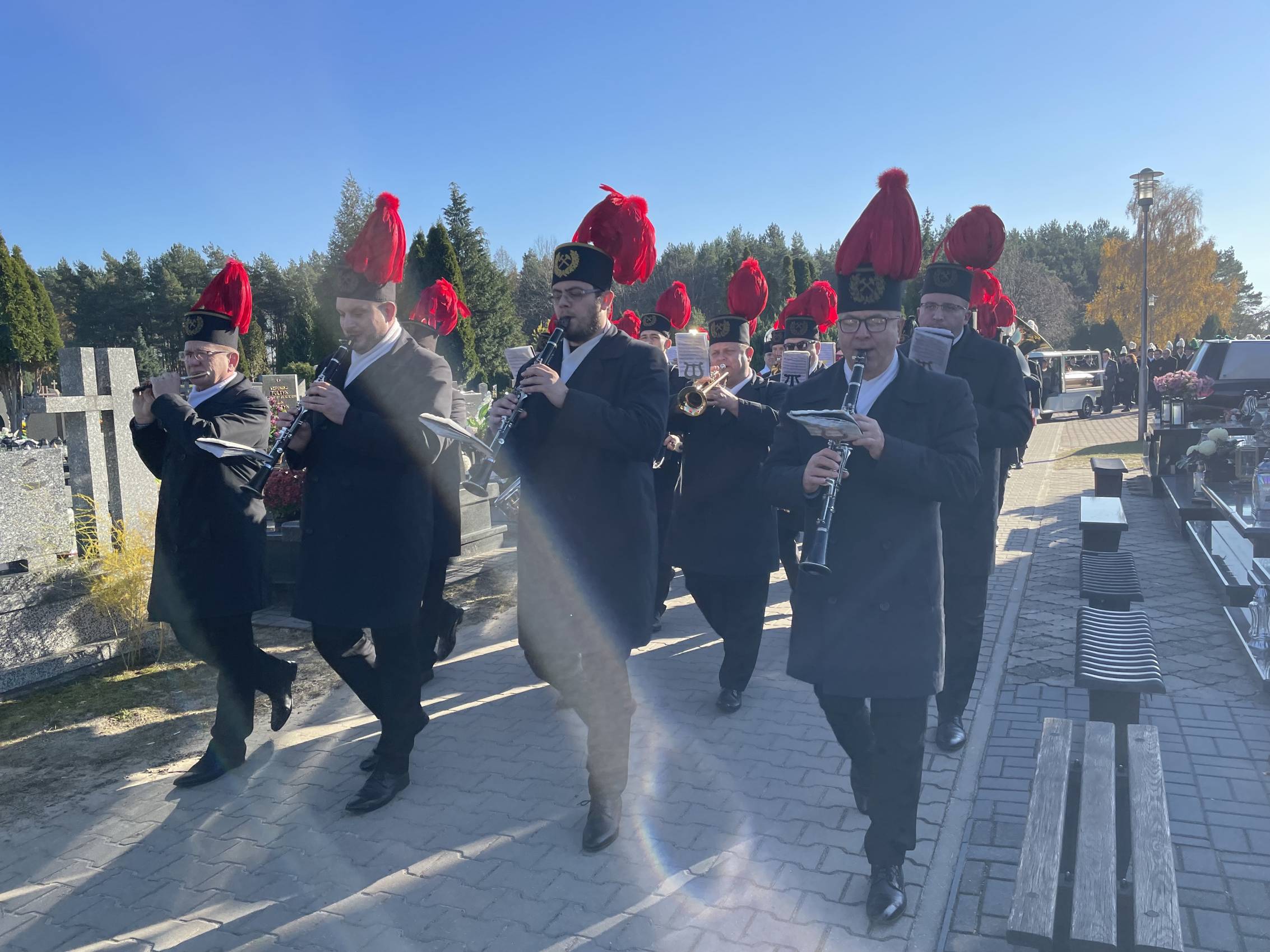 W ostatniej drodze towarzyszyła mu orkiestra górnicza, poczty sztandarowe i morze czarnych mundurów z zielonymi, białymi i czarnymi pióropuszami czako.