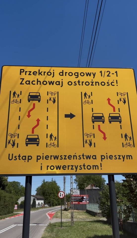 Jeden pas dla samochodów, a dwa skrajne dla pieszych i rowerzystów - nowa organizacja ruchu już obowiązuje na ul. Świerczowskiej. To innowacyjne rozwiązanie – pierwsze tego rodzaju w województwie łódzkim, które ma poprawić bezpieczeństwo i ułatwić poruszanie się na drodze, mimo braku chodnika.