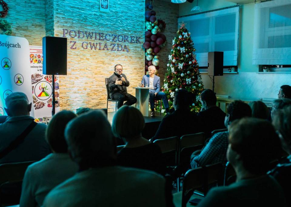 10 grudnia sala Gminnego Ośrodka Kultury w Brójcach wypełniła się do ostatniego miejsca za sprawą kolejnej odsłony cyklu „Podwieczorek z gwiazdą". Tym razem mieszkańcy gminy oraz okolic mieli okazję spotkać się z Zbigniewem Zamachowskim – jednym z najbardziej wszechstronnych polskich artystów, aktorem filmowym, dubbingowym, teatralnym i telewizyjnym, a także wokalistą, którego talent od lat cieszy się uznaniem widzów różnych pokoleń.