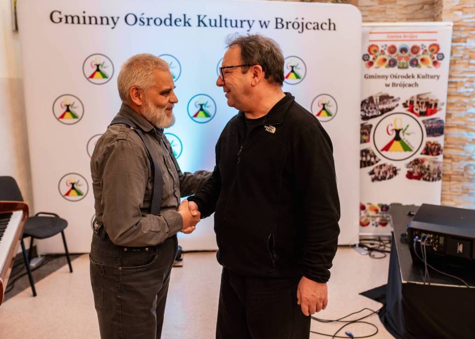 Po części oficjalnej artysta z ogromną życzliwością rozmawiał z uczestnikami oraz pozował do pamiątkowych zdjęć. Wieczór zakończył się podziękowaniami – Wójt Gminy Brójce Radosław Agaciak wyraził wdzięczność za obecność i inspirujące spotkanie, a dyrektor GOK w Brójcach, Justyna Jurga-Maszczyk, wręczyła Zbigniewowi Zamachowskiemu okolicznościową kompozycję kwiatową.