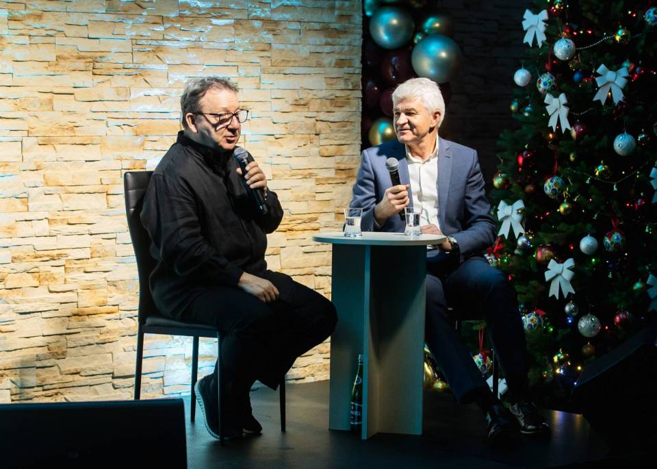 Spotkanie, tradycyjnie prowadzone przez Leszka Bonara, przebiegało w atmosferze swobodnej rozmowy, pełnej anegdot i ciekawostek z życia artysty. Nie zabrakło także interakcji z publicznością – Zamachowski chętnie odpowiadał na pytania i dzielił się refleksjami, czym zaskarbił sobie sympatię zgromadzonych. Wyjątkowym momentem wieczoru były piosenki wykonane przez gościa, które nadały wydarzeniu szczególnego klimatu. Na koniec wszyscy wspólnie zaśpiewali kolędę, podkreślając przedświąteczny charakter spotkania.
