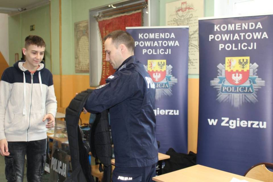 - Zainteresowanym uczniom stróże prawa zaprezentowali sprzęt, jakiego używają w codziennej służbie, a także odpowiadali na pytania dotyczące głównie pracy w zawodzie policjanta. Dzięki obecności funkcjonariuszy młodzi ludzie mogli bezpośrednio uzyskać odpowiedzi na nurtujące ich pytania dotyczące zawodu policjanta. Dla uczestników spotkania przygotowane zostały foldery informacyjne dotyczące m.in. poszczególnych etapów procedury kwalifikacyjnej oraz informacji, jakim wymaganiom musi sprostać kandydat, aby móc ubiegać się o wstąpienie w szeregi Policji - mówią policjanci.