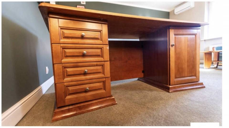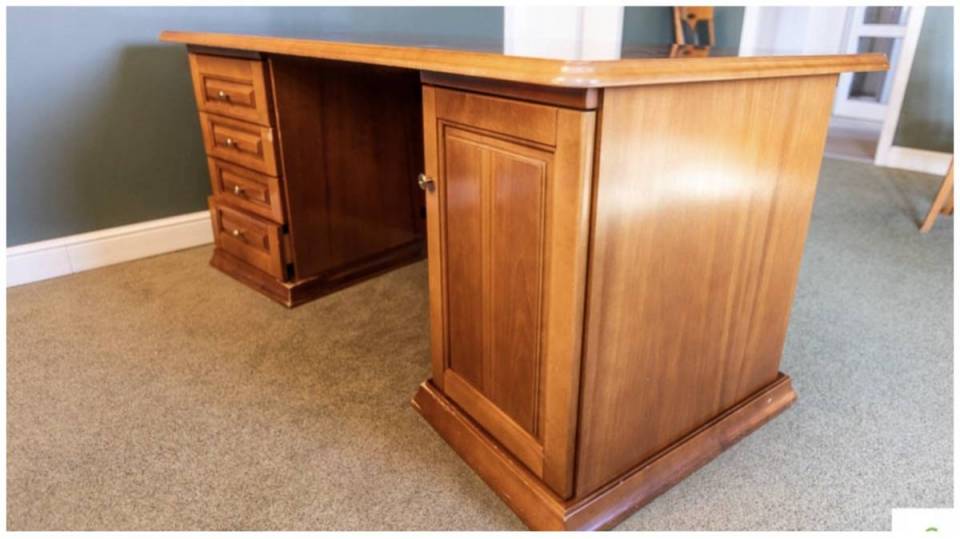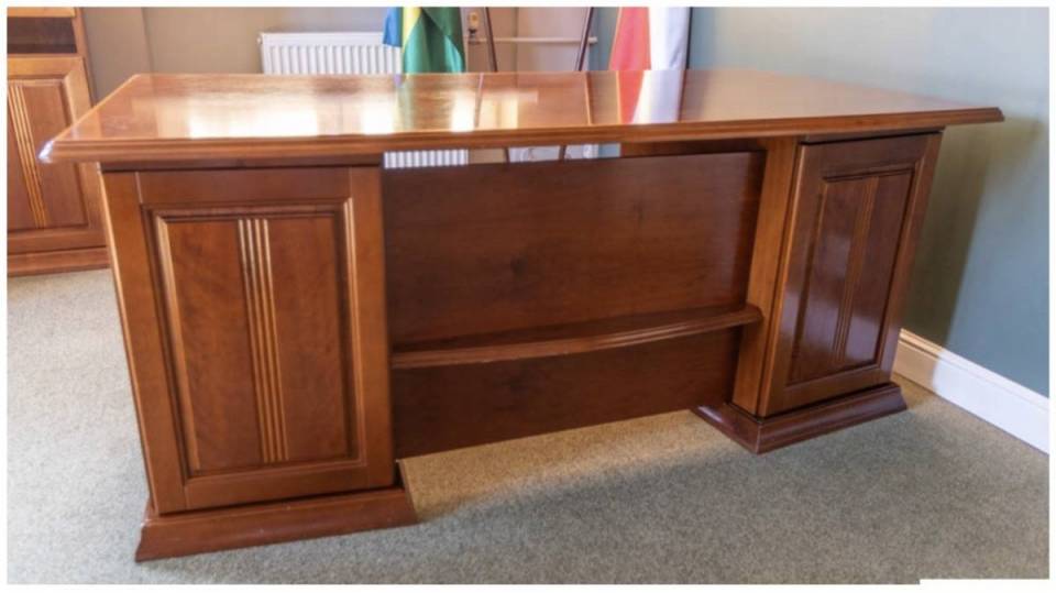 "Macie okazję kupić biurko z poprzedniego wieku, przy którym pracowali prezydenci Bełchatowa i zapadła przy nim niejedna ważna decyzja. Biurko ma 25 lat i jak na ten wiek jest w całkiem dobrym stanie. Ma też niespotykany kolor antycznej czereśni"