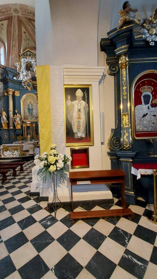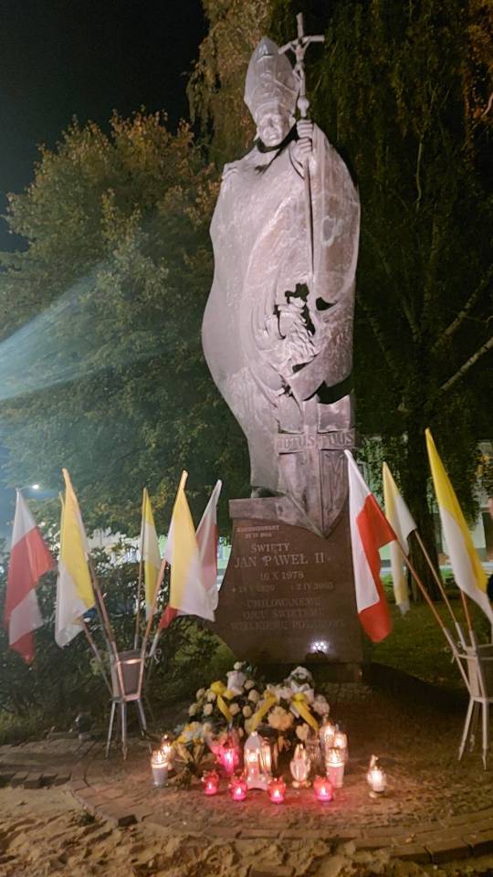 Na koniec każdej Mszy Św. wierni otrzymali błogosławieństwo relikwiami św. Jana Pawła II. Szczególna oprawę miała Msza św. o 10:00 kiedy to liturgię uświetnił Chór parafialny Adalbertus z Białej Rawskiej. Wieczorem zaś, od godziny 21:00 z udziałem władz samorządowych oraz mieszkańców miało miejsce modlitewne czuwanie przy pomniku św. Jana Pawła II.