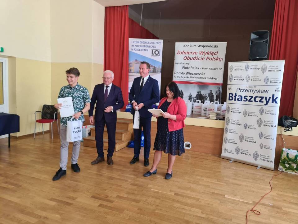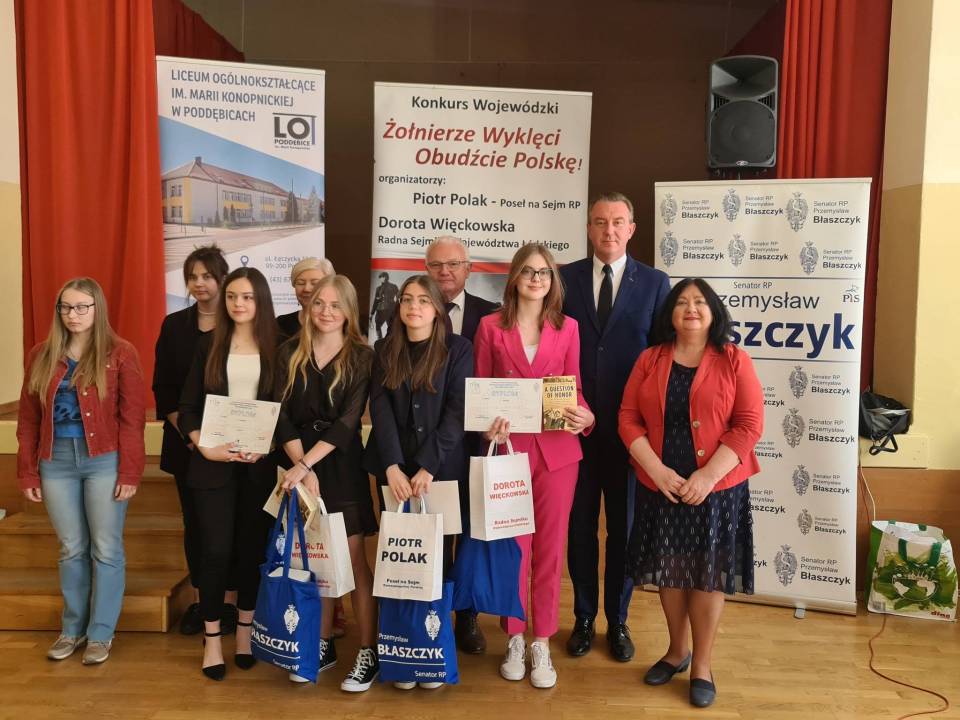 W Liceum Ogólnokształcącym im. Marii Konopnickiej w Poddębicach odbył się etap regionalny konkursu "Żołnierze Wyklęci obudźcie Polskę".