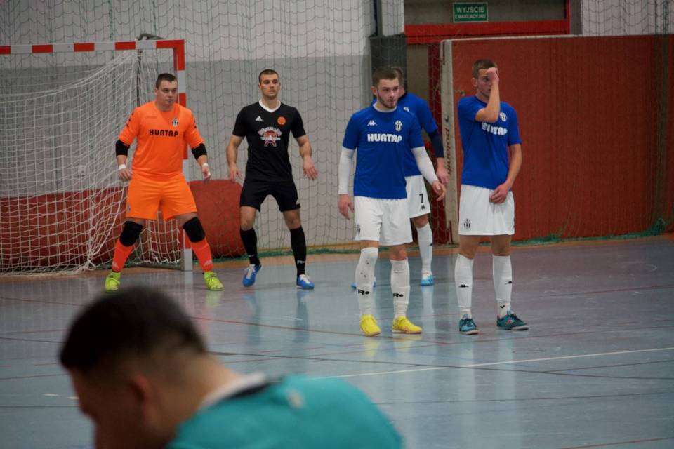 W pierwszej połowie oglądaliśmy głównie walkę fizyczną, ale nie zabrakło także goli. Już kilkadziesiąt sekund po rozpoczęciu meczu, wynik otworzył Hubert Włodarczyk, który wykorzystał szybkie wznowienie bramkarza Hurtapu. Wicemistrz poprzedniego sezonu wyrównał kilka minut później. Długo utrzymywał się wynik remisowy, jednak w końcówce pierwszej pomocy mocniej zaatakowali łęczycanie, czego efektem były gole Kamila Dzierbickiego i Roberta Czekalskiego.