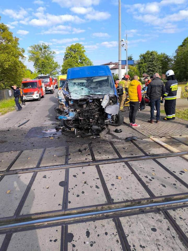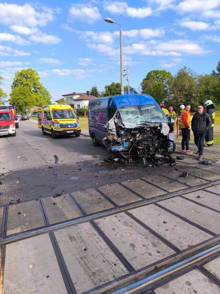 Duże siły ratunkowe na miejscu zdarzeniaInformacja o zderzeniu początkowo sugerowała, że doszło do kolizji pociągu z busem do przewozu osób, dlatego na miejsce zadysponowano sześć jednostek straży pożarnej – trzy z PSP i trzy z OSP. Po przyjeździe okazało się jednak, że w wypadku brała udział lokomotywa bez wagonów oraz samochód dostawczy.