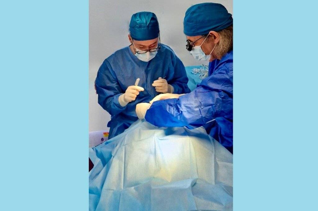 - Pacjent od wielu lat borykał się z procesami zapalnymi związanymi z odwinięciem powieki. Z czasem doprowadziło to do skrócenia blaszki przedniej powieki, czyli skóry. Wykonaliśmy zabieg polegający na przecięciu wzrostów, uzupełnieniu ubytku przeszczepem skóry zza małżowiny usznej oraz na napięciu powieki w płaszczyźnie horyzontalnej, wykorzystując pasek boczny tarczki doszyty do okostnej oczodołu na wysokości guzka Whitnalla - wyjaśnia dr n. med. Kęcik.