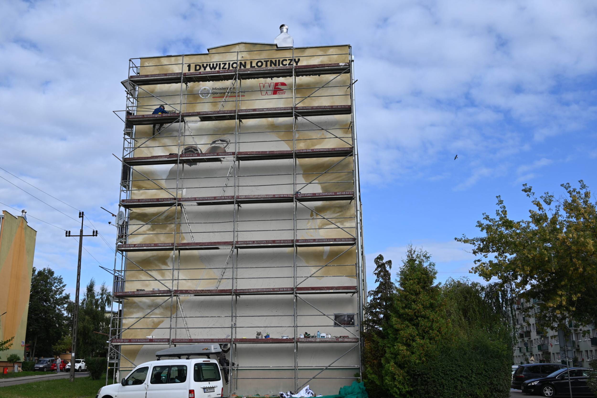 - Mural realizowany jest na ścianie bloku mieszkalnego w Łęczycy, zlokalizowanego przy ul. Bitwy nad Bzurą 26 w Łęczycy, będącego w zasobach Spółdzielni Mieszkaniowej „Łęczycanka", która wyraziła zgodę na wykonanie malowidła, za co bardzo dziękuję – mówi Burmistrz Łęczycy, Paweł Kulesza. – Dzięki temu projektowi zaprezentujemy i upamiętnimy 1 Dywizjon Lotniczy, który historycznie związany jest z Łęczycą i Ziemią Łęczycką. Nasza jednostka nawiązuje do 37 Pułku Śmigłowców Transportowych, przejmując tradycje formacji – jego załogi niosły pomoc społeczeństwu w czasie klęsk żywiołowych, np. podczas powodzi w 1982 roku – dodaje włodarz.