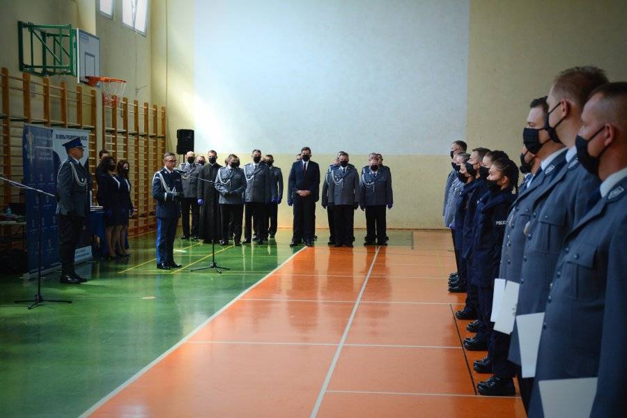 Rotę ślubowania wypowiedziało 34 nowo przyjętych funkcjonariuszy, w tym 28 policjantów i 6 policjantek.