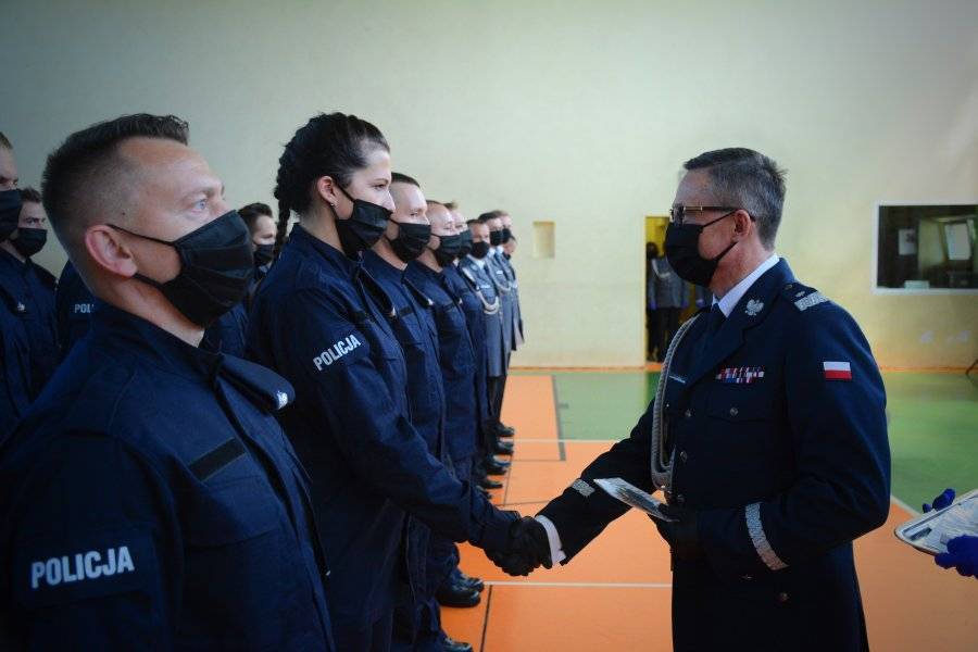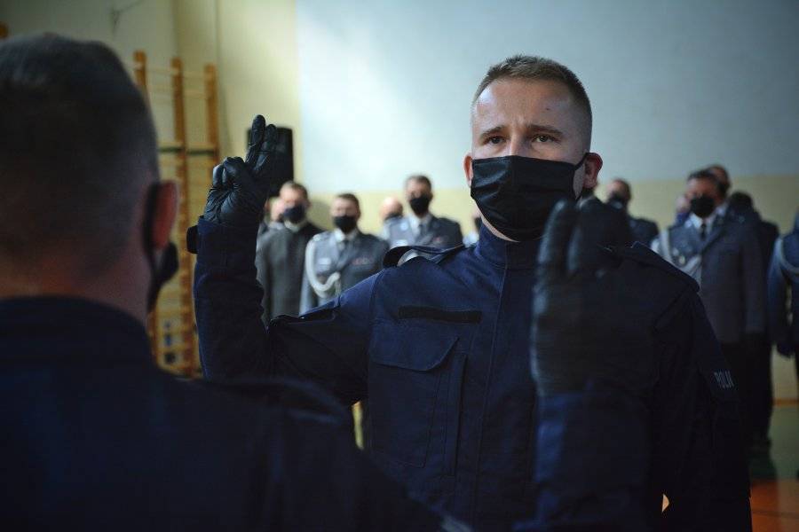 Nowo przyjęci policjanci po szkoleniu podstawowym rozpoczną służbę w jednostkach naszego garnizonu. To drugie przyjęcie do służby w 2020 roku. W marcu ślubowanie złożyło 43 policjantów.