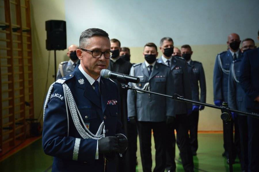 Komendant Wojewódzki Policji w Łodzi nadinsp. Sławomir Litwin przypomniał o przypadającej w tym roku 95 rocznicy utworzenia Policji Kobiecej. Z tej okazji szczególne słowa skierował do funkcjonariuszek obecnych również w szeregach ślubujących. Wskazał na trud jaki muszą włożyć w godzenie życia zawodowego z rodzinnym co wymaga ogromnego wsparcia ze strony najbliższych. Podkreślił , że kobiety w Policji wykazują się profesjonalizmem i zaangażowaniem realizując te same zadania co ich koledzy.