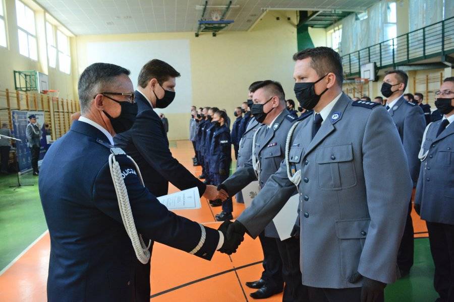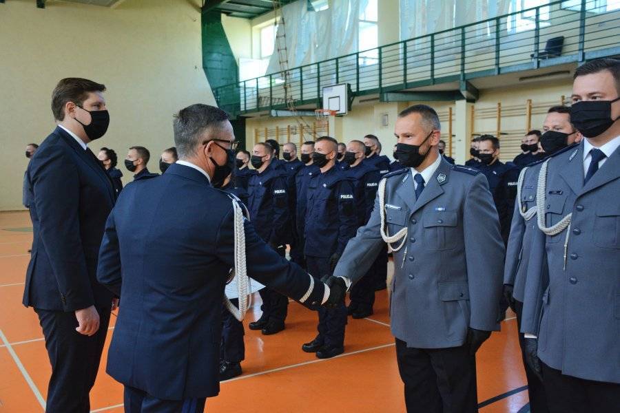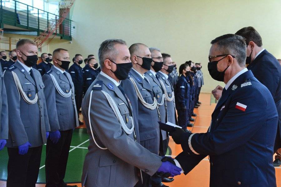 Następnie wręczono przyznane przez Ministra Spraw Wewnętrznych i Administracji odznaki Zasłużony Policjant oraz akty mianowania na wyższe stopnie policyjne.
